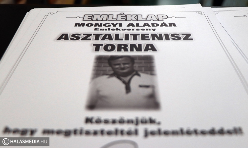 A jeles alkalomra eljöttek barátai, ismerősei, egykori sporttársai, tisztelői is. A halasi borlovagrend előtt Fülöp Róbert polgármester nyitotta meg az emléktorna első részét, amelyen kilenc, igen vegyes összetételű csapat mérette meg magát. Ali bácsiról mindenki tudta, hogy imádta a vicceket, nem véletlen, hogy ezen a délelőttön a sport mellett ezek a tréfás pillanatok is kiemelkedő szerepet játszottak. Azt is láthattuk, hogy Mongyi Aladár gyermekei, Marianna és Gergely is jól bánik az ütővel, előbbi elhozta édesapja egykori játékszerét.