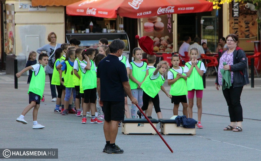 Talán még sohasem volt atlétikaverseny, tehetségkutatóval egybekötve a halasi főtéren. Pénteken délután aztán több mint félszáz kisdiák vette birtokba a belvárost a QKAC Kupa keretében. Érdeklődő nézőközönség és a szülők előtt mutatták be, hogy mennyire jók a kölyöktatlétika versenyszámaiban. A szervező a Kiskunhalasi Atlétikai Club volt, az egyesület szerette volna felmérni a 8-10 éves korosztály sportágbeli képességeit. A gyerekek csapatokat alkottak és úgy vettek részt a különböző számokban, Szloboda Mihály irányítás mellett.