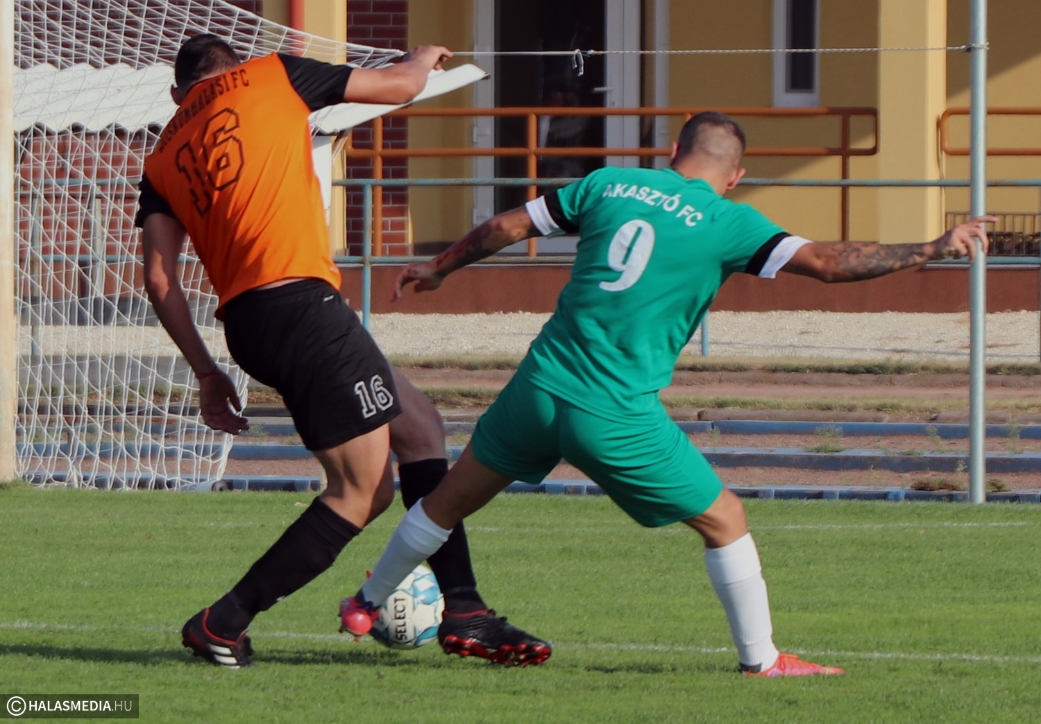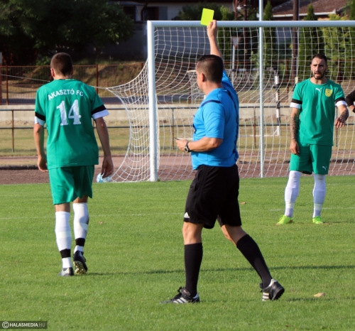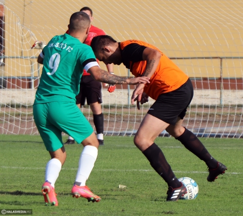 Jól kezdtek a hazaiak, de az látszott, hogy rengeteg veszély van az akasztói támadásokban. Egy védelmi hibát a 14. percben majdnem gólra váltottak a vendégek. Az Akasztó 11-est évgezhetett el egy büntetőterületen belüli szabálytalanság miatt, Palla Lajos életerős lövését viszont Lengyel Péter bravúrral kiütötte. Ez erőt kell, hogy adjon a halasiaknak - vélték a drukkerek. A folytatásban több olyan lehetősége is volt a KFC-nek, amelyet könnyen gólra válthatott volna. Miletic alig gurított a kapu mellé, Fodor Zsombor remek indítása pontosan megtalálta Ikotic Ádámot, akinek a lövését Németh Zsolt kiválóan hárította. A szünetig nem változott az eredmény,