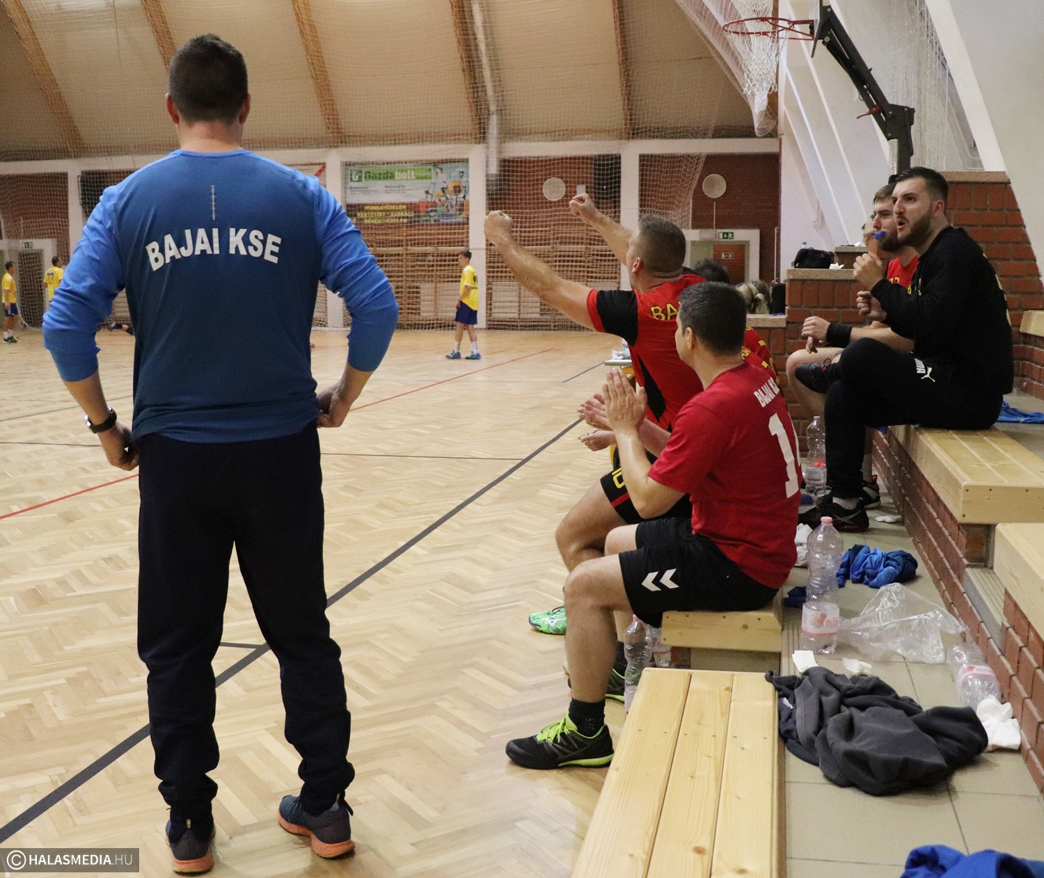 A kiskőrösi vereség után hazai pályán folytatta bajnoki szereplését a Kiskunhalasi UKSC. Demeter Ádám csapata a Baja ellen lépett pályára a Horváth István Sportcsarnokban. Az ifjúságiak fölényes győzelme megadta a találkozó alaphangját, a halasiak bíztak a hasonlóan jó eredményben. A tavalyi szezon tizedikje volt a bajai csapat, de idén mindenképpen jobban szeretnének szerepelni. Ez meg is látszott ezen a találkozón is. A szerb vendégjátékosokkal megerősített vizitálók szerezték meg a vezetést a találkozó első perceiben, nem sokkal később Gyenizse László egyenlített. A fizikai és magasságbeli fölényüket maximálisan kihasználó vendégeké volt a folytatás, a 8. percben 4-2-re, a 13. percben pedig 6-4-re vezettek. A 17. percben sikerült felzárkózni egy gólra, de a hátralévő 13 perc a bajaiaké volt. A 28. percre már ötgólos volt az előnyük, amelyet sikerült a szünetig megtartani. (8-13).