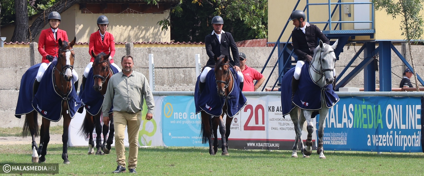 Ezen a hétvégén ismét benépesült a HirlingJózsef Lovaspark. Regionális és országos versenynek a helyszíne a létesítmény, ahol vasárnap kora délután ünnepélyes köszöntőre is sor került. Egy héttel ezelőtt a Bács-Kiskun megyei válogatott parádés teljesítménnyel lett első a Fiat Díjugrató Országos Bajnokságon. Őket köszöntötték a lovasverseny közönsége előtt. Füzér Flóra Jethro, Weinhardt Virág Chiclana, Fazekas István Walter, míg Füzér Gábor J'Taime nyergében érkezett meg a főépület elé, a csapatvezető Béressy Krisztiánnal az élen.