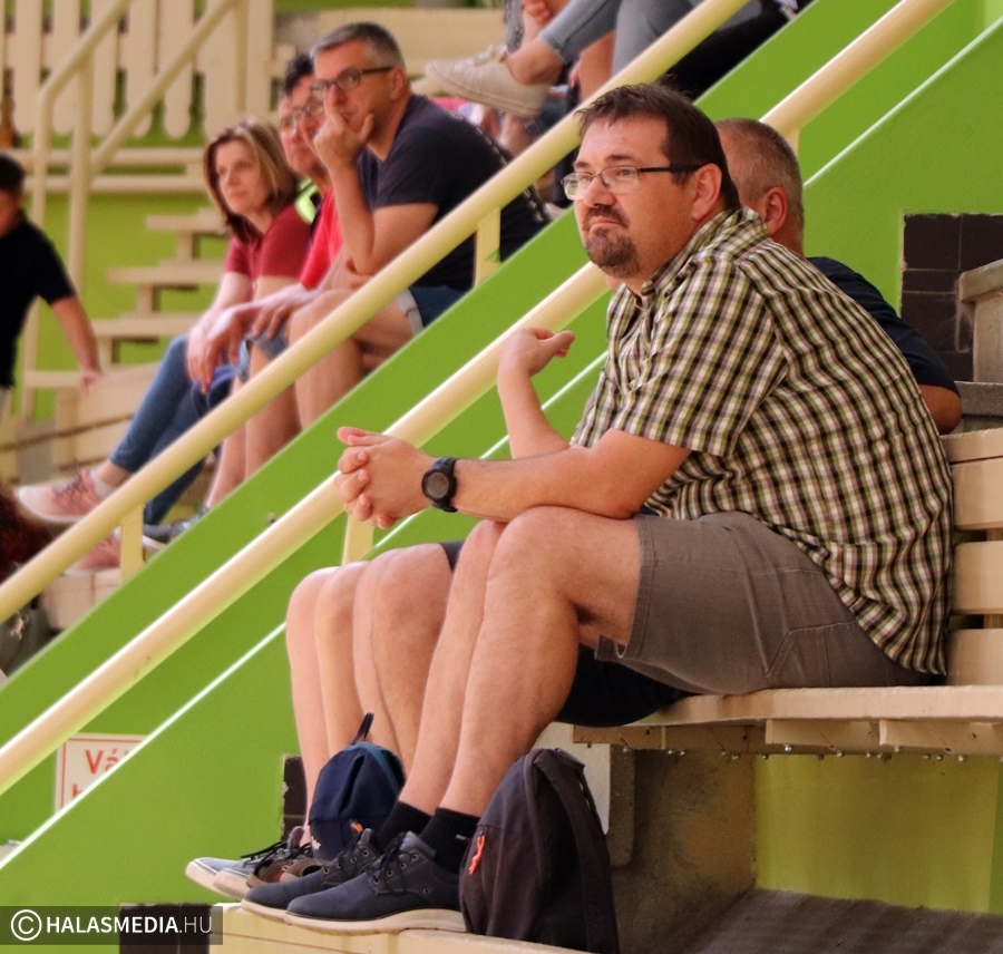 A szünet után csak az volt a kérdés, hogy hány góllal nyernek a halasiak. Nagy Gábor minden játékosának lehetőséget adott, a vendégek célja pedig az volt, hogy minél kisebb legyen a különbség. Szép gólokat láthatott a lelkes közönség mindkét oldalon, a hazai drukkerek pedig joggal ünnepelték övéiket. A Kiskunhalasi UKSC száz százalékos teljesítménnyel hozta a felsőházi rájátszást. Kiskunhalasi UKSC - Újkígyó 35-26. Az ezüst- és az aranyérmeket Lekrinszki Tivadar egykori kiváló nemzetközi játékvezető adta át a játékosoknak.