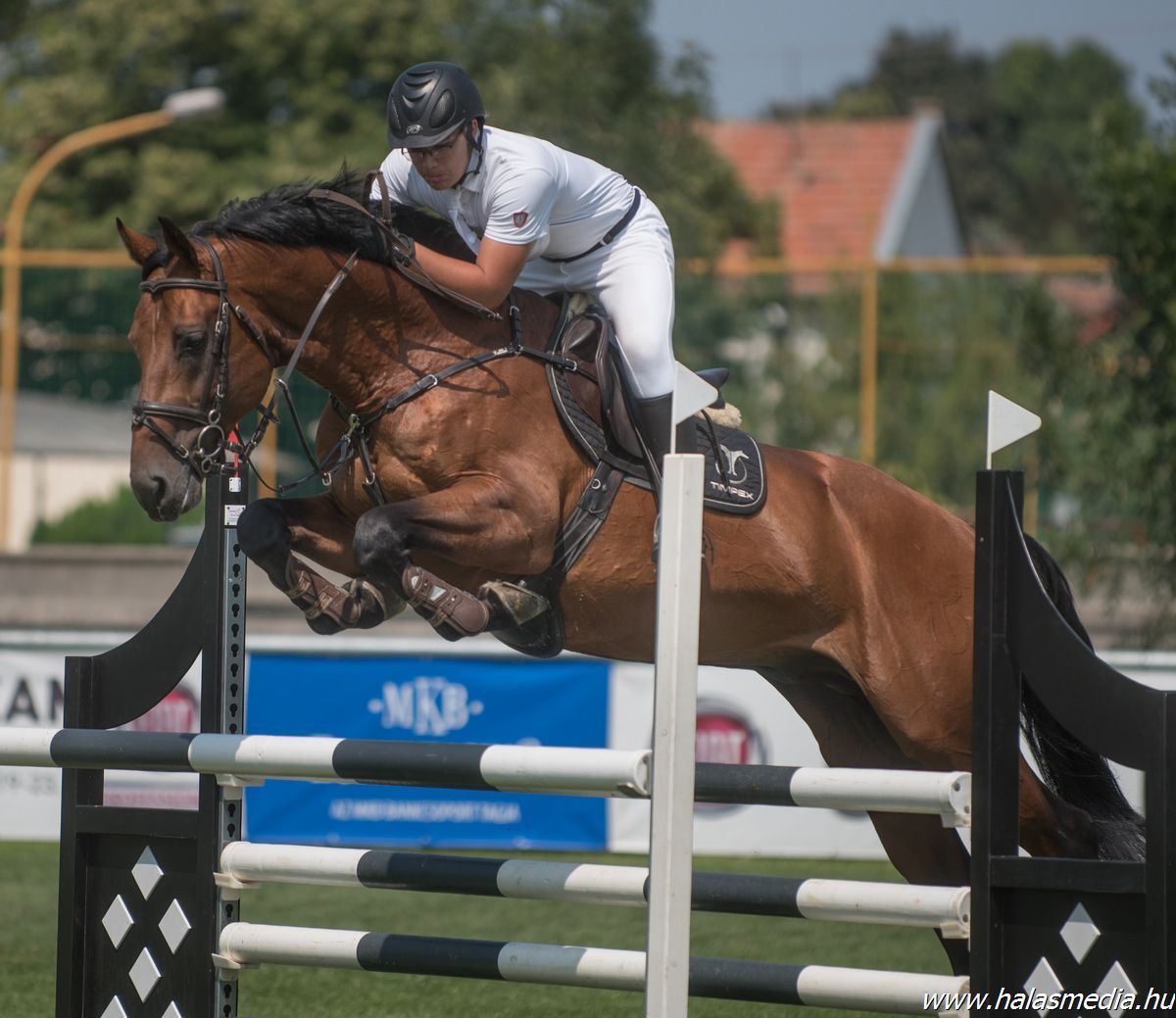A Kiskunhalasi Országos Minősítő Díjugrató Verseny és Grand Prix második napján hat versenyszámot és 198 startot látott a közönség a megújult Hirling József Lovaspark zöld gyepén. A nap legnehezebb 140 cm-es pályáján bolgár siker született, ahol Angel Niagolov, Chaccothago nyergében győzött (címképen, fotó Hajdu Krisztina). A halasi lovasok a tegnapihoz képest visszafogottabb eredményeket értek el.