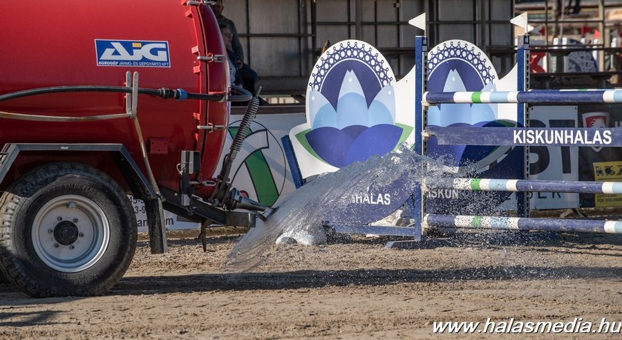 A halasi versenyen ezúttal a filces pályát használták versenyzésre, ami jól tűrte a változatos időjárási körülményeket a gondos pályafelkészítésnek köszönhetően. Karádi László és csapata rendezte be a versenypályát az egyes számok követelményei szerint és bizony az orkánszerű szeles időszakban elkeltek a jól megtömött homokzsákok a kitörők kitámasztásához.