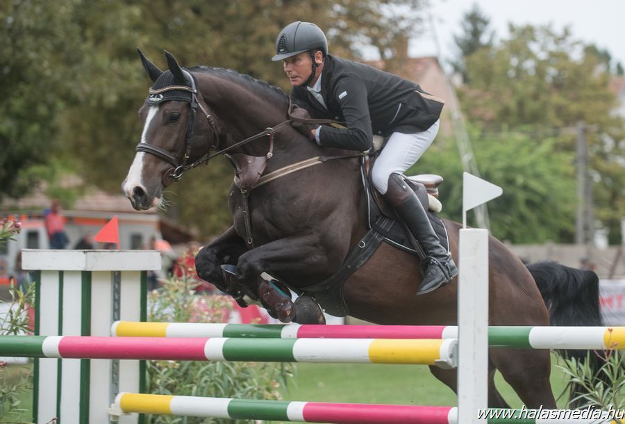 A nap utolsó, legnehezebb számában 140 cm-es pályán mérték össze tudásukat a felnőttek. A számban egyszerű a szabály, ha hibázol hozzáadnak az idődhöz, ezért aztán legtöbben sietősre vették a versenyszámot. Ez leggyorsabban és hiba nélkül a Kisteleki Lovas egyesület sportolójának sikerült Kronosz nevű lovával. Czékus Zoltán (címképen Fugli Károllyal, a zsűri nemzetközii tagjával) röviden értékelt."Teljesen rendben volt ez a pálya. Úgy építették meg ahogy ezt a számot lovagolni kell és ami egy országos bajnoki elődöntőhöz illik. A vadász számban menni kell előre. Mentünk az időért és persze hibátlanul, ez fontos". A második helyen az ötszörös magyar bajnok Horváth Balázs (Airvent LC) végzett PM Diana-val. A teljes eredménylistához katt ide.