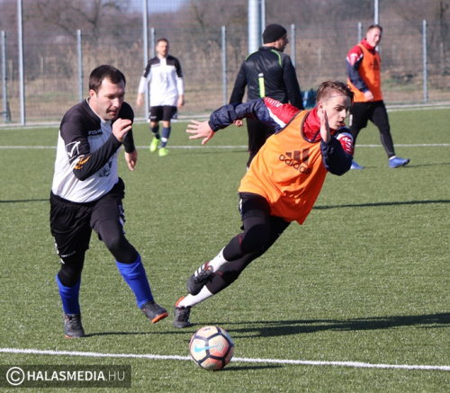 A napsütéses, de hideg időben a műfüves arénában meccseltek a csapatok. A halasiak keretében is voltak hiányzók, ahogy azt Agócs Zoltán a bemutatkozásakor jelezte, valóban nem az a kiabálós edző. Csendesen, zömében a pálya túloldaláról, ahol nem voltak nézők, nézte a mérkőzést. A KFC az első 45 percben több jó táámadást vezetett, Torma Barnabás volt elemében. Az uszódiak is megszerezték a saját góljukat, a szünetben 3-1-re vezetett a házigazda. A szünetben aztán a halasi tréner eligazította játékosait, ez úgy tűnik hatott, mert a második 45 percben tovább gólokat lőttek a vendéglátók. Faddikorr-Kiskunhalasi FC - Uszód 8-1.