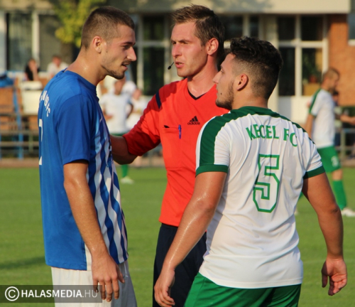 Nos, talán még Kis Péter keceli edző sem számított ilyen kezdésre. Mire fotósok igazén beállíthatták volna gépeiket, már a halasi kapuban táncolt a labda. Még egy perc sem telt el, amikor egy formás vendégtámadást nem tudott megakasztani a hazai védelem és Bajnok Noel közelről nem hibázott. Sakk-matt helyzet volt. A folytatásban is zavarodottnak tűnt a KFC, amely felforgatott védelemmel volt kénytelen játszani a hiányzók miatt. A keceliek pontosabbak voltak és az első negyedóra végén már a második gólt érték el. Ezt követően is többször meleg helyzet alakult ki a hazai tizenhatoson belül, de a vendégek elhibázták a lehetőségeiket, vagy pedig Borka Barnabás tisztázott. A halasiak szabadrúgásból veszélyeztetettek, de a szünetig nem változott az eredmény.