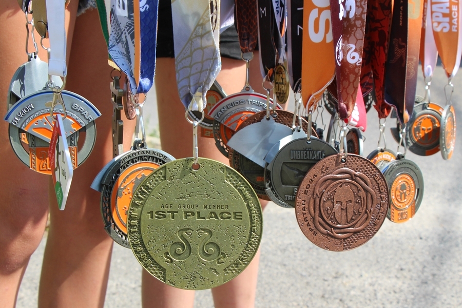 - Fanni, a barátnőm, ő már korábban elkezdte a Spartant, miatta vágtam bele én is, Kilenc éves voltam akkor. A Spartan mellett én még karatézom, focizok is tette-hozzá Ramóna. Érdeklődésünkre elmondta, hogy a verseny előtt két héttel már komolyabban kell edzeni, sokat fut, édesapja megy mellette biciklivel és méri az időt. Neki is impozáns az éremkollekciója. - Nagyon büszke vagyok minden érmemre, de talán a Vácon szerzett második helyem számomra a legkedvesebb. Az volt az első olyan verseny, amikor a 10-13 évesek mezőnyében indulhattam-árulta el Ramóna.