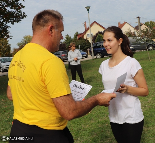 Ismét megrendezte a kegyeleti váltófutást a Kiskunhalasi Kertvárosi Általános iskola az aradi vértanúk emléke előtt tisztelegve. Csütörtökön délután gyülekeztek a sportolók az intézmény előtti sportpályánál. Szloboda Mihály testnevelő és csapata jelölte ki a pályát, amelyen a 13 fős csapatok szerepeltek. Rövid köszöntő után megemlékeztek a kivégzett hősökről, majd mindenki megismerhette a szabályokat. Idén a középiskolák versengésével indult a program.
