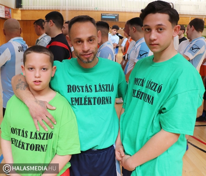 Rostás Lászlóra, az országos hírű cigány vezetőre, önkormányzati képviselőre, sportszervezőre, a Halasi Csillagok labdarúgócsapat alapítójára emlékeztek szombaton a Dékáni-sportcsarnokban. Mi mással is tiszteleghettek volna jobban Laci emléke előtt, mint egy focitornával. Hét csapat mérkőzött egymással, a győzelmet idén a Kiskőrös szerezte meg.