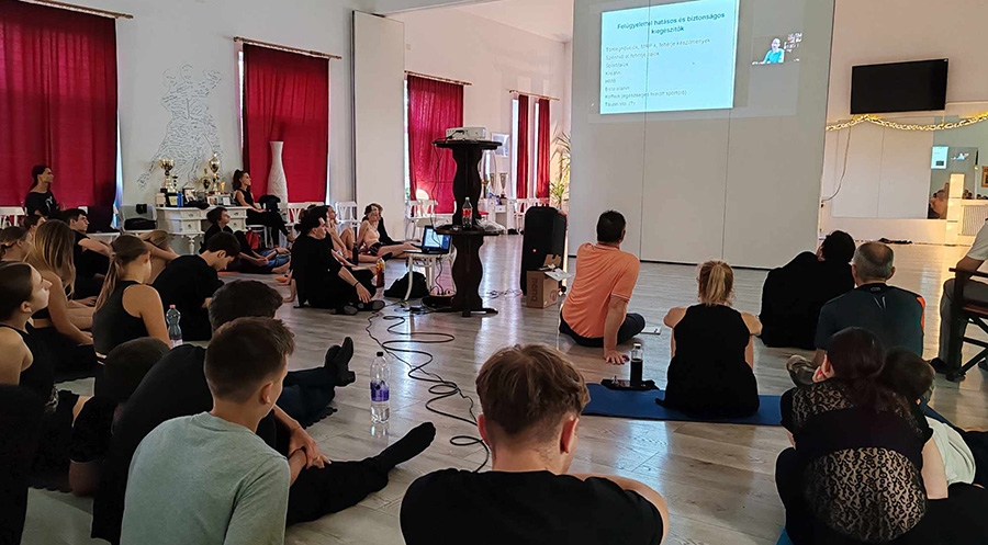Táncsportolóinkat nem fogja vissza az embert próbáló meleg idő, ami a próbateremben sokszor a 40 fok feletti, párás hőségig fokozódik. Egy verseny lesz és több hetes intenzív napokból álló képzések folynak a Tánchagyományok Házában.