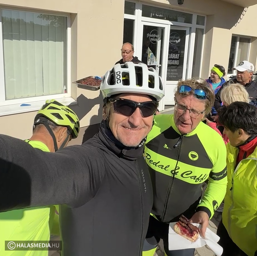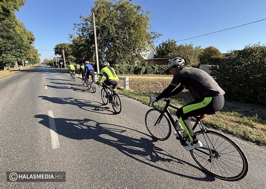 A sík bácskai táj gyors tempót engedett: a halasi csapat váltott vezetéssel, 30–40 km/órás sebességgel haladt, ahogy a szélviszonyok engedték. A bringások nagyjából féltávnál, Dunapatajon álltak meg egy rövid pihenőre – itt teljesült a túra „kávés” része. Rövid frissítés után új erőre kapva folytatták az utat, és alig több mint egy óra alatt teljesítették a hátralévő távot. A nyeregben összesen bő két és háromnegyed órát töltöttek a kerekezők.