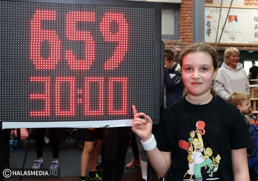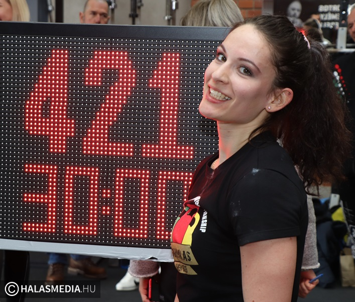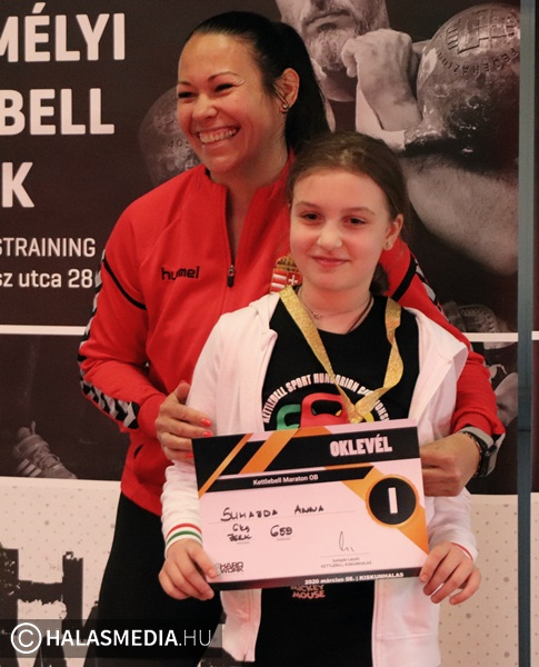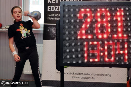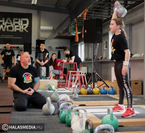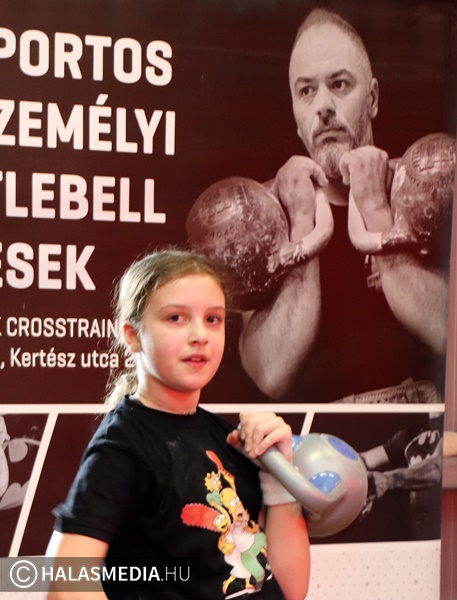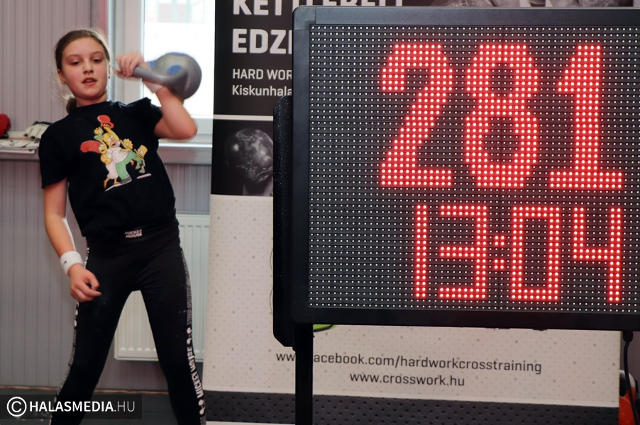 Második napjához érkezett a Kettlebell Országos Bajnokság. A kiskunhalasi Hard Work Crosstraining edzőtermében délelőtt tíz órától kezdődtek a küzdelmek, több kategóriában és különböző súlyú eszközökkel. Vasárnap már a legkisebbek is lehetőséget kaptak, az ifjú hölgyek és urak pedig már rutinosan bánnak a szerrel. Az alma nem esett messze a fájától, ez igaz Suhajda Annára is, aki édesapja, Suhajda Laca nyomdokain lépked. Anna 30 perc alatt a 4 kilós eszközzel 659 ismétlést végzett, ezzel országos bajnoki címet nyert.
