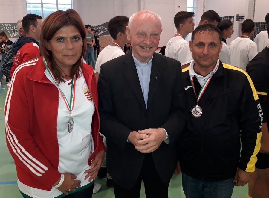 A Telki Edzőközpont volt a házigazdája a Magyar Labdarúgó Szövetség Grassroots Fesztiváljának. Az eseményt megtisztelte jelenlétével Jorge Diaz, a FIFA grassroots managere és Olivier Doglia UEFA Development manager is, aki az európai szövetség elismerő üdvözletével érkezett. A magyar oldalt Nyilasi Tibor és Dunai Antal képviselte. A Sport az Esélyért Kiskunhalasi Egyesületének U15-ös focicsapata kapott meghívást a tornára, Végvári Ferenc vezetésével nagyon készültek a rangos sporteseményre. A halasiak a Komádit 3-2-re, a Szolnokot 2-1-re, a Somoygvárt pedig 5-1-re győzték le. A Monosbéltől kikapott ugyan a csapat, de így is megszerezte az igen előkelő második helyet. - Óriási megtiszteltetés volt, hogy az ezüstérmet, a kupát és a díjakat személyesen Kozma Imre atya, irgalmas rendi szerzetes, a Magyar Máltai Szeretetszolgálat alapító elnöke adta át. Meghatódva álltunk ott az eredményhirdetésen mindannyian, hogy pici kis egyesületünk mekkora rendezvényre juthatott el. November 16-án lesz egy saját rendezvényünk, regionális labdarúgó torna házigazdája lesz az egyesület - tudtuk meg Molnárné Gép Anikó elnöktől.