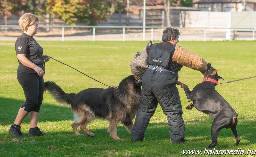 A Szentesi Wikfild K9 kutyaképző csapata kezdte a vasárnap délutáni szabadidős programot a Hirling József Lovaspark központi arénájában. A látványos fegyelmező gyakorlatok a csibészelés, a szituációs elemek nagy tetszést arattak a kilátogató közönség körében. A kutyabemutatót aztán az erős emberek versenye követte, ahol a mezőnyben Locskai József személyében (címképen) halasi sportolónak is szurkolhatott a nagyérdemű.