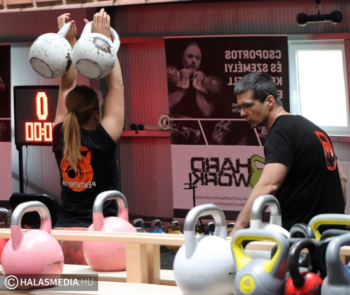 Szombaton délelőtt benépesült a Hard Work Crosstraining halasi edzőterme. Suhajda Laca és csapata lehet a házigazdája a Kettlebell Országos Bajnokságnak. A megméretés népszerű a versenyzők körében, tapasztalatunk azt mutatja, hogy bizony a gyengébbik nem is komoly teljesítményekre képes ebben a nehéz sportágban. A verseny már elkezdődött, az első nap a nők és a férfiak egyaránt biathlonban, valamint hosszúciklusban mérik össze erejüket, az eszközök 16, 24, 28 kilósak a férfiaknál, a hölgyeknél pedig 12, 16, iletve 20 kilogramm, a menetidő pedig 10 perc.