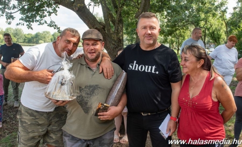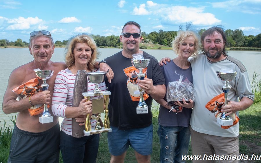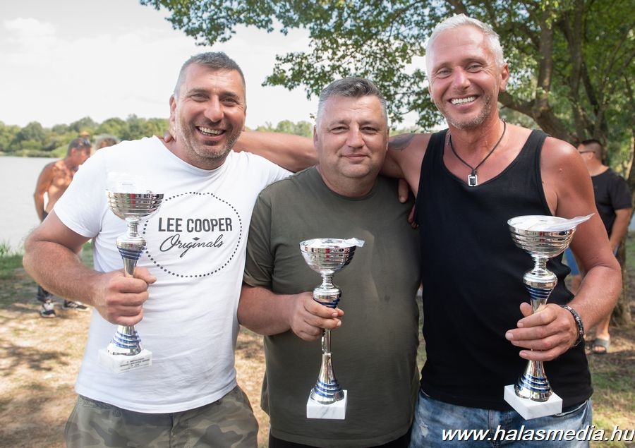 A horgászversenyt a Halasi Halbetyárok csapata (címképen) nyerte 37,11 kg összfogással. Becz Gyula, a győztes csapat vezetője úgy értékelte, hogy jó esély volt a nagy fogásokra a tóban. Nekünk egy kis előnyünk volt. Kránitz Robi segítőmmel jól ismerjük a tavat, szerencsés helyet fogtunk ki és tudjuk milyen ízeket, csalikat szeretnek a halak. Az csak ha(l)b a tortán, hogy a Csengelei Nagy házaspár (Gábor és Erzsébet) házias alapanyagaival a kakas pörköltes első helyet is megszerezte csapatunknak – fűzte hozzá a győztes csapatkapitány.