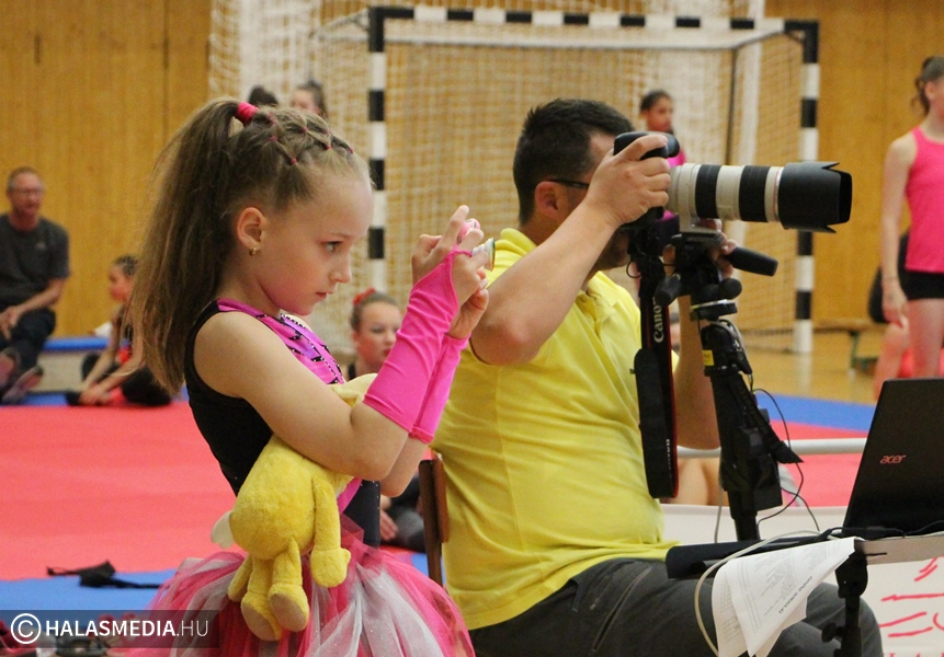 Természetesen a halasi versenyzők is rajthoz álltak. Elsőként az Európa Kupán remeklő Miskei Léna mutatta be gyakorlatát. A szépen kivitelezett produkció a pontozóknak is tetszett, az eredményhirdetésen Léna a dobogó második fokára állhatott fel. Következett Lovas Adria, aki szintén jól kivetelezett gyakorlatot varázsolt a szőnyegre, majd Szakál Maja koreográfiája ragadtatta tapsra a publikumot az ötödik korcsoportban. Maja mosolygós gyakorlata a hatodik legjobb volt ezen a napon.