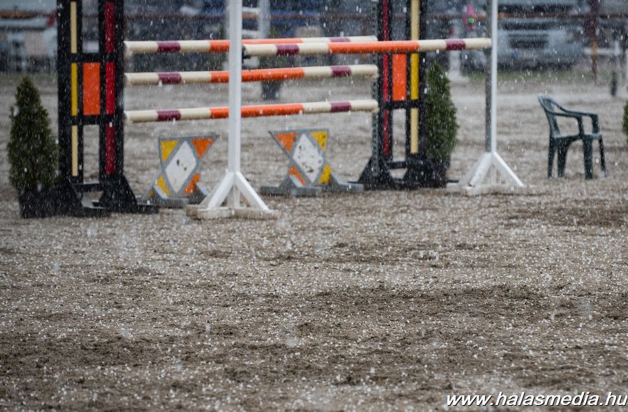 Három napon át folyt a Kiskunhalasi Országos Minősítő Díjugrató Verseny Kiskunhalason az elmúlt hétvégén. Ezúttal már közönség biztatása mellett szálltak nyeregbe az ország legjobb lovasai a Hirling József Lovasparkban. A füves arénát is kipróbálták a lovasok. A legrangosabb, 140 cm-es vasárnapi számban, holtversenyben hat első helyezés született a hirtelen jött égszakadás és jégeső miatt.