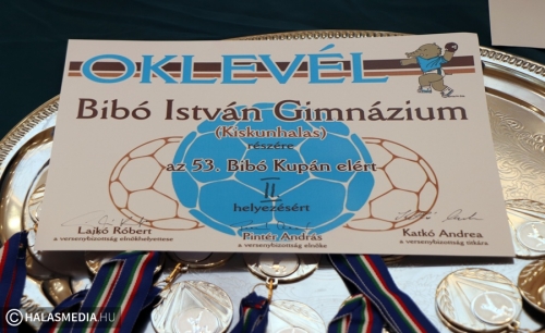 Végeredmény, fiúk: 1. Szilády Áron Református Gimnázium, 2. Kiskunhalasi Bibó István Gimnázium, 3. Piarista Gimnázium Kecskemét, 4. II. Rákóczi Ferenc Katolikus Gimnázium és Technikum, 5. Tomori Pál Gimnázium Kiskunmajsa. Lányok: 1. Kiskunhalasi Bibó István Gimnázium, 2. Kézilabda Sportiskola Egyesület Szeged, 3. Szilády Áron Református Gimnázium, 4. Piarista Gimnázium Kecskemét. A különdíjak sorában vehette át a legjobb kapusnak járó elismerést Bertalan Csenge (Bibó), Szijártó Vince Orlandó (Kecskemét), a gólkirály Gyömbér Brigitta (Szeged) 21 góllal és Szabados Bence (Bibó) 27 góllal. A legtechnikásabb játékos Pintér Lilla (Bibó) és Hachbold László (Tekó) volt. A legjobb bibós játékosnak Nagy Nikolettet és Ritter Raffalt választották. Az idén alapított Paczolay Gyuláné, Marica-díjat a Szilády-gimnázium tehetséges kapusa Malustyik Laura kapta meg. A jövő reménysége kitüntető címet Görbe Gabriella (Szilády) és Szabadi Noel (Szilády) érdemelte ki. A kupa 53. gólját a lányoknál Nagy Nikolett (Bibó), míg a fiúknál Szabad Bence (Bibó) dobta.