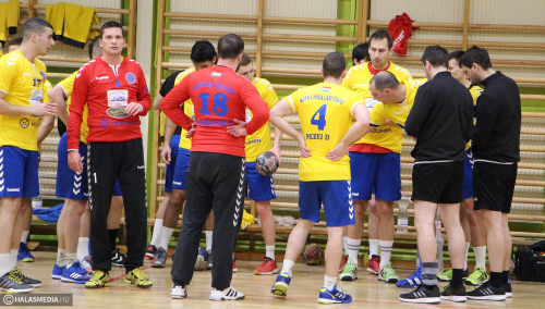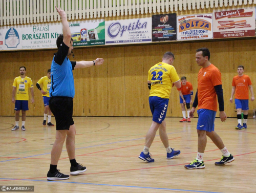 Két-három gól volt a különbség, de szívósan tartotta magát a vendégcsapat, nem csoda, hogy Paic Róbert időt kért az első negyedórában. Ez úgy tűnt, hogy rendezte a sorokat. A védekezés jelentősen javult és ebből több gyors indításra is lehetősége volt a halasiaknak. Ezeket pedig rendre értékesítették a játékosok. Fokozatosan nőtt a különbség, a 25. percben 20-12 volt az eredmény, a lefújás pillanatában pedig 24-14 volt az eredmény félóra játék után. Ez megnyugtató volt azokban a percekben.