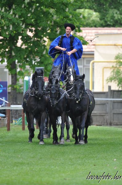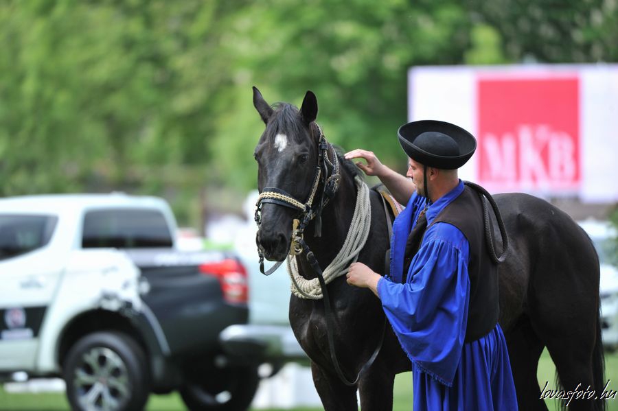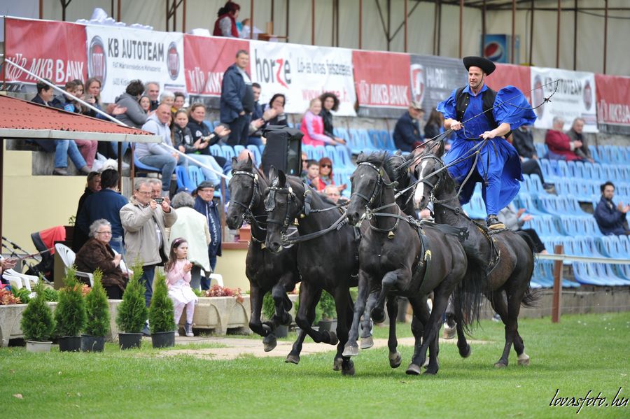 A megemlékezés után látványos és a halasi versenyekhez szorosan tartozó pusztafogat és csikós bemutató következett. A hazai közönség nagyon várta és meg is kapta, ami jár egy május 1-i lovasversenyen, a Szegedi pusztaötös gyönyörű látványát. Ifj. Szegedi Gábor édesapja irányítása mellett a Lázár Lovaspark állományából kiválasztott fekete ötösfogattal mutatkozott be. A Kínából egy hete csak e bemutatóért hazaérkezett Szegedi Gábor minden oldalról és jármódban megmutatta fogatát, amit vastapssal honorált a közönség.