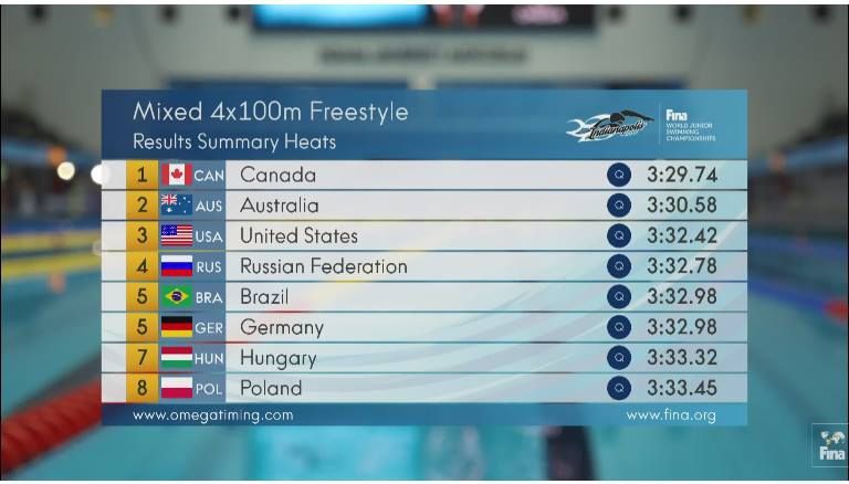 Juhász Janka egészen kiválóan úszott a 4x100 méteres mixváltó tagjaként néhány perccel ezelőtt az ifjúsági úszó világbajnokságon. A magyar csapat futamában a második volt, összesítésben viszont a hetedik helyen jutott be a döntőbe, amelyet magyar idő szerint szombaton 01:31-kor rendeznek.