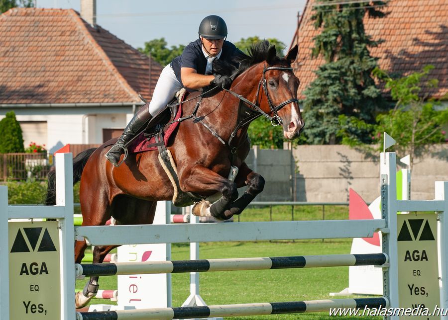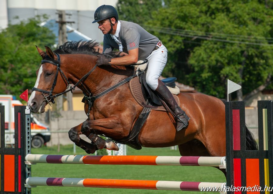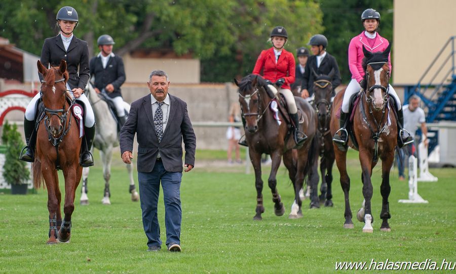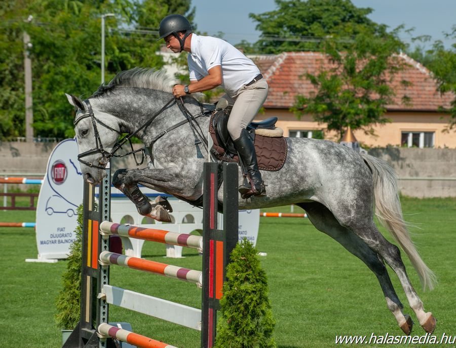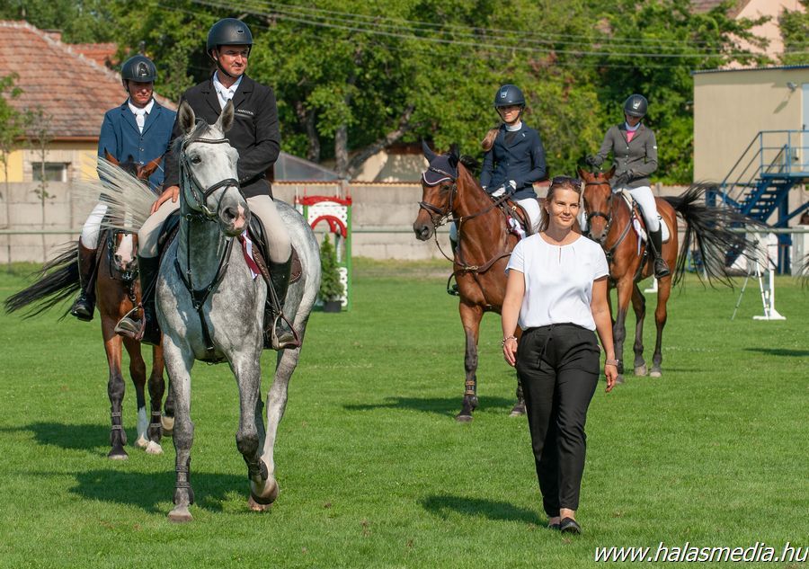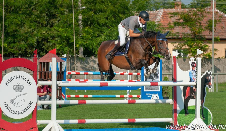 Remek időjárás, tíz versenyszám és százhatvanhét start az országos minősítő díjugrató verseny első napján Kiskunhalason. A legnehezebb, 130 cm-es versenyszámot Jován Richárd (Mezőhegyesi Ménes KH SE) Roche nevű lován (címképen) nyerte. Több helyi siker született. A rendezők megemlékeztek a kedden, 83. életévében elhunyt Matajsz János egyéni és csapatbajnok, válogatott halasi lovasról.