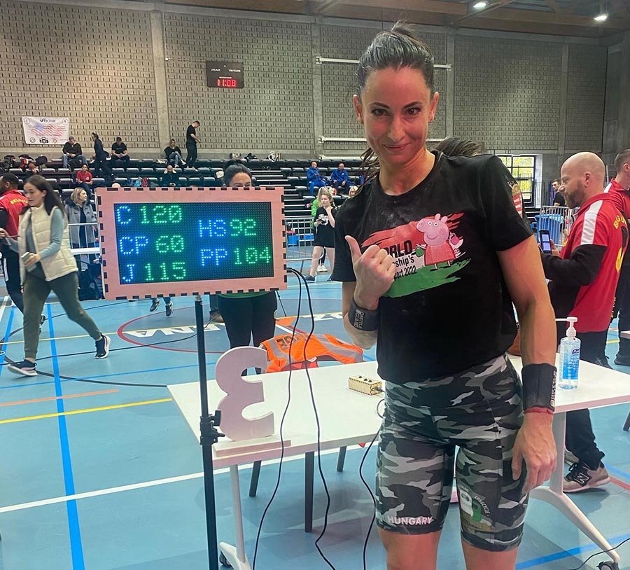 Utánuk következett Nagy Szandra, akinél az utolsó pillanatban változtattunk a megbeszélt súlyokon és visszább vettünk, törekedve a maximális darabszámokra, amelyeket majdnem tudott hozni. Nórinak és Szandinak ez volt az első világversenyük, ebből kiindulva maximálisan elégedettek vagyunk a teljesítményükkel.