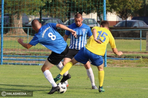 Fekete füstöt okádott a Bundzsák Dezső Sportközpont öltözőjének kéménye nem sokkal a Faddikorr-Kiskunhalasi FC - Akasztó bajnoki labdarúgó-mérkőzés kezdő sípszava előtt. De nem e miatt bosszankodtak leginkább a drukkerek a következő 90 percben. A halasiak sima vereséggel és két kiállítással zártak Hartán a nyitófordulóban, míg az akasztóiak hat gólt rúgva és négy gólt kapva győztek a Bácsalmás ellen. A mérkőzés első felében feljegyezhettünk egy óriási vendéghelyzetet, egy nagy Borka Barnabás védést és egy Sorin lesgólt. Az ivószünet után, a 26. percben aztán Juhász Tamás egy szöglet után életerős lövéssel szerzett vezetést a vendégeknek. Nem sokkal később egy akasztói fejes hagyta el úgy a játékteret, hogy a labda érintette a felső lécet. A hajrában nekünk is volt lehetőségünk, de abból nem született meg a hőn áhított egyenlítés. Az Akasztó 45 perc játékot követően szervezettebbnek tűnt.