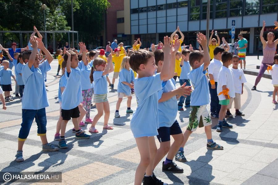 A kihívás napjához csatlakoztak a Halasi Napsugár óvodák ovisai is. Már több éves hagyománya van annak, hogy május utolsó szerdájának délelőttjén, a város főterén gyülekeznek az Ady, a Szilády, a Magyar és az Átlós utcai óvodák nagycsoportosai. Ahogy elindult a zene, mozgásba kendültek a gyerekek és az óvónőkkel, dajkákkal együtt teljesítették a 15 perc mozgást. Sőt még arra is volt energiájuk, hogy a nagy melegben fussanak pár kört a főtér közepén lévő páva körül.
