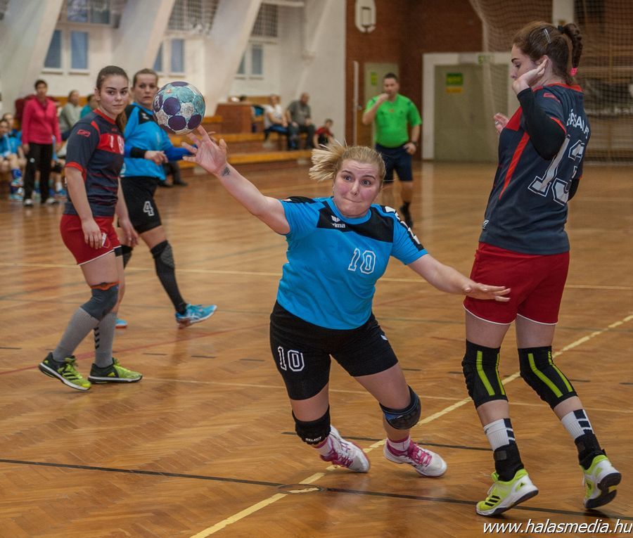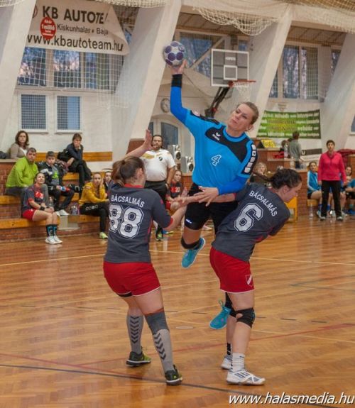 A megyei női kézilabda bajnokság tabellájának harmadik helyezett csapatát, a Bácsalmás PVSE-ét fogadta vasárnap délután otthonában a KB Autoteam SE. A fiatal lendületes vendégek nem tudták komolyan feltörni a hazai csapat védelmét, akik viszont gyors ellentámadásokkal elhúztak már a találkozó elején. Így viszonylag könnyedén tartotta itthon a két pontot a bajnokságot vezető Fiat-os együttes. (címképen Csősz Szilvia gólszerzés közben)