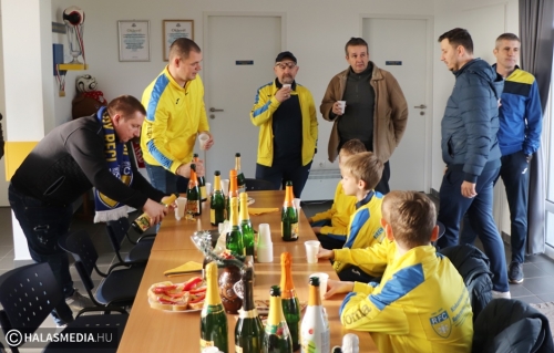 Vincze Attila sportigazgató elmondta, hogy ebben az évben közel 50 millió forintos fejlesztés valósulhatott meg. Elkészült a villanyvilágítás, az öltöző berendezéseinek korszerűsítése, az új labdafogó háló, érkeztek sportfelszerelések. Néhány nappal ezelőtt átvették a klub harmadik kisbuszát, egy Fordot. Mindez pályázati forrásból, támogatói segítséggel és saját költségvetésből jöhetett létre. A koccintás után a gyerkőcök alig várták, hogy a kellemes időt kihasználva focizzanak egyet.