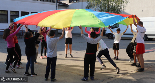 Szombat munkanap volt, több iskolában is kihasználták arra, hogy különleges programokat szervezzenek a diákoknak. A Kertvárosi Általános Iskoláról tudjuk, hogy a sport, a mozgás fontos szerepet játszik az intézmény életében, ennek szellemében zajlottak az események. Az iskola csapatai évek óta eredményesen szerepelnek a játékos sportversenyen és a Nagy Vagy! televíziós vetélkedőben is, a szombat délelőttön ezekből elevenedett meg néhány jelenet. A program közös bemelegítéssel kezdődött.