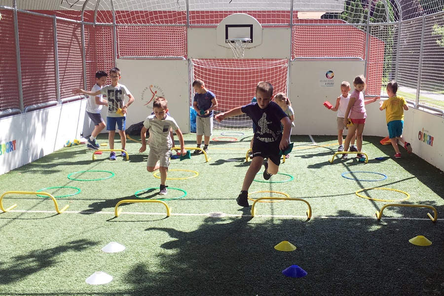 A nyári tábor foglalkozásai között kiemelten a labdás képességfejlesztés szerepelt, melyet Dr. Paic-Karsai Dóra és Dr. Paic Róbert tartottak. A tábor fókuszában a játékközpontúság állt, melyhez a természetes alapmozgások széles tárháza és a különféle eszközökkel végrehajtható feladatok játékos megközelítése nyújtott biztos alapot. Mivel több korosztály is volt a táborozók között, ezért csoportbontással és a feladatok differenciált megközelítésével dolgoztak a szervezők. A fiatalabbaknak járások, futások, ugrások és dobások kombinációja szerepelt, melyet fogó-, szobor- és szerepjátékok formájában, zenei kísérettel végeztek a gyerekek. A tapasztaltabbaknál különféle akadálypályák szerepeltek és dobások, cselezések végrehajtása különféle labdával az implicit tanulás módszerével.