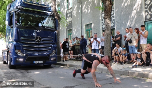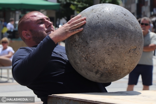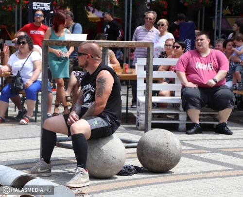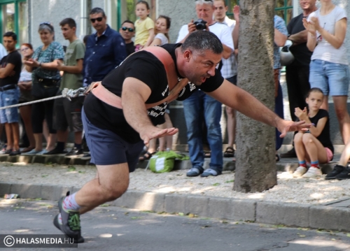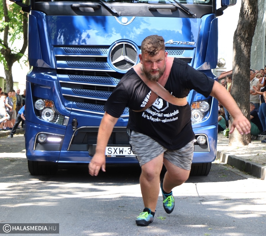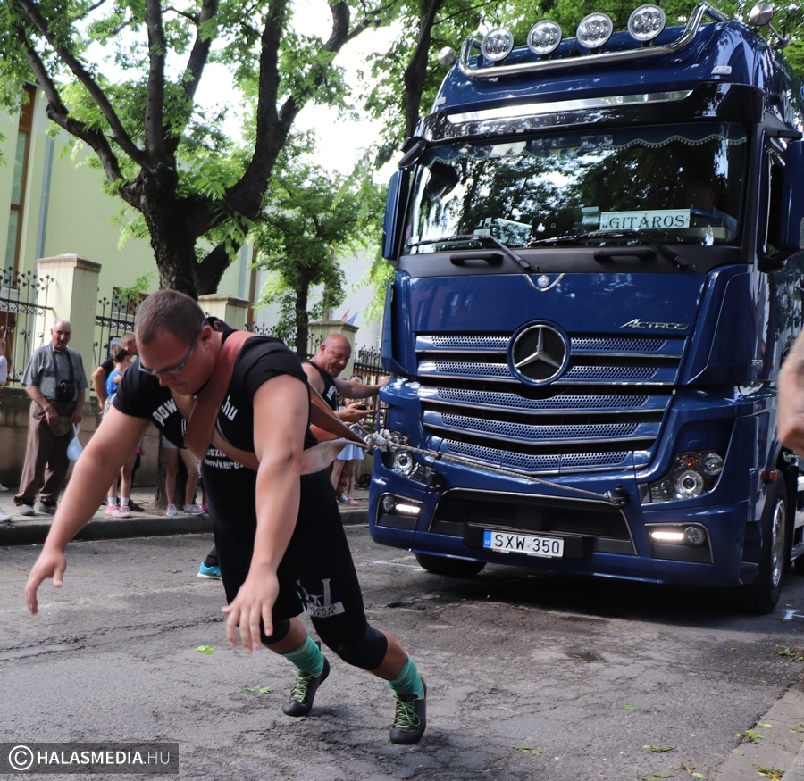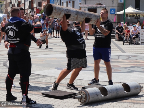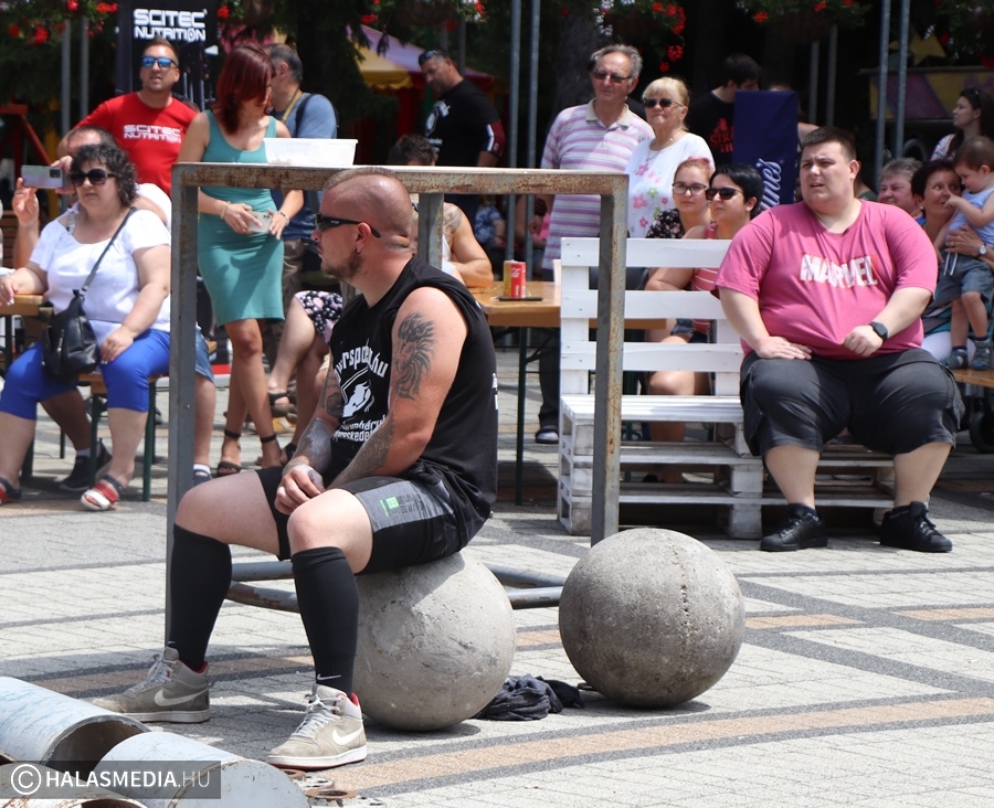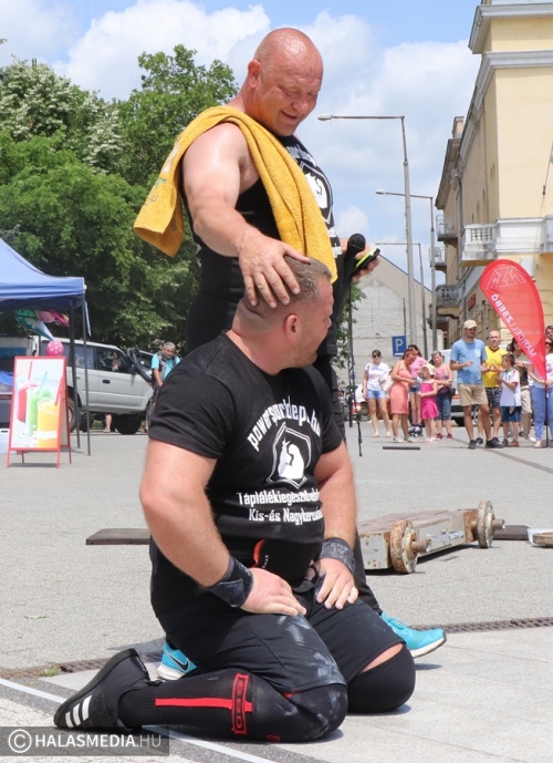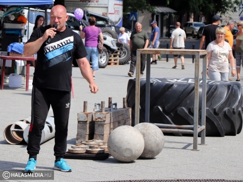 A Városi Sportnap legjobban várt programja az erősemberek versenye volt. A rendező Halasi Média és Kultúra Kft. Locskai József hathatós közreműködésével és Bartalos Tamás pazar szervezőkészségének köszöhetően sikerült egy emlékezetes megméretést a főtérre varázsolni. Tamás már előzetesen azt ígérte, óriási show lett. Igaza volt. A tizenkét versenyzőre öt szám várt, az első a kamionhúzás volt a Városháza utcában. Az út két oldala megtelt érdeklődővel és szurkolóval, elsőként pedig Bartalos Tamás bizonyította, el lehet húzni a 7,5 tonnás járművet. A kiskunhalasi Locskai József pedig óriási segítséget kapott a közönségtől.