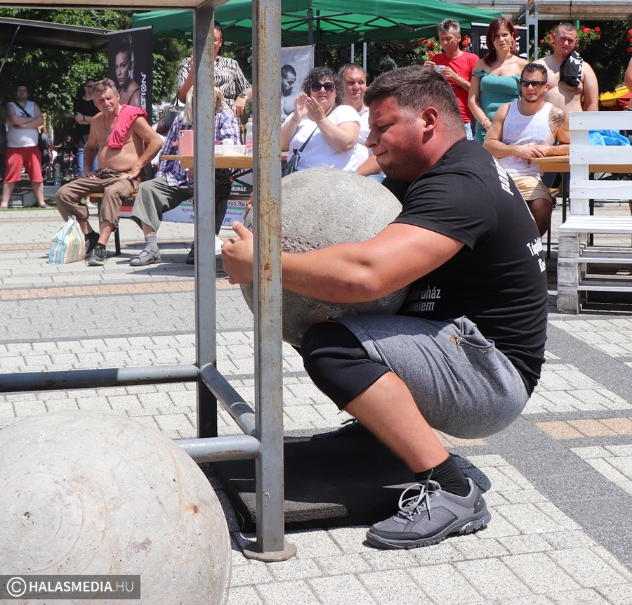 Óriási show lett a Városi Sportnapon megrendezett erősember versenyből. A 12 versenyző mellett Bartalos Tamás játékvezetőként, showivőként is remekelt, ha pedig kellett, akkor kamiont húzott és hatalmas traktorabroncsot görgetett. A rekkenő hőség ellenére szépszámú közönség nézte és szurkolta végig az öt számot, amelynek a végén a kiskunhalasi Locskai József győzött. Biztosak lehetünk abban, hogy lesz folytatás.