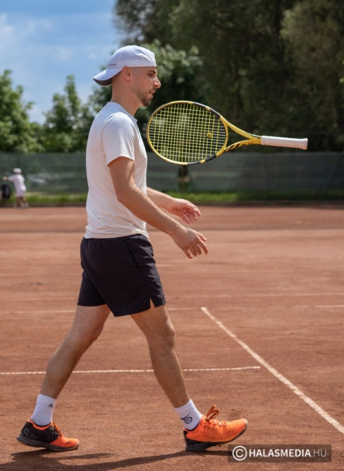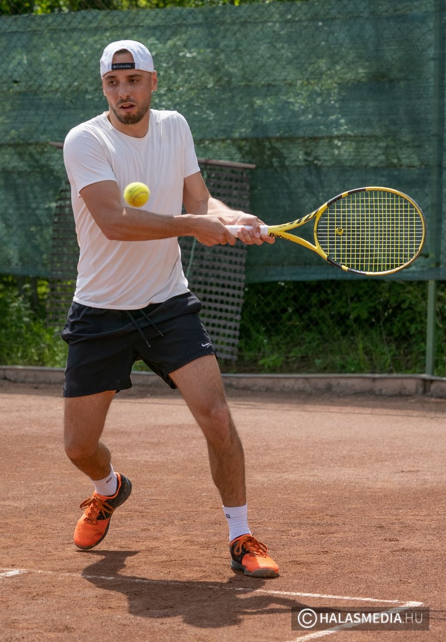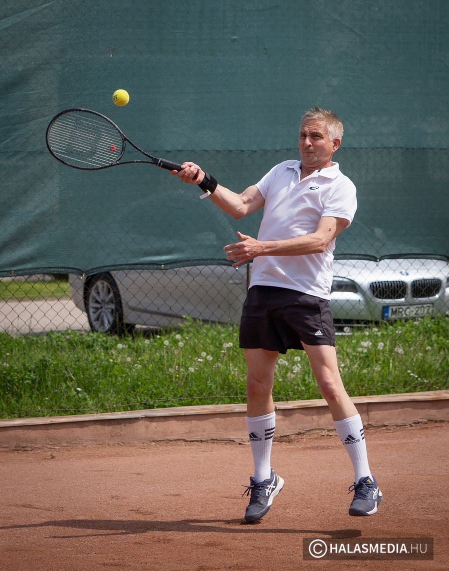 Ideális, derült szélcsendes időben rendezték meg a Halasi Tenisz Club tagjai szabadtéri szezonnyitó versenyüket az Erzsébet királyné téren található pályabázisukon szombaton. Az I. Sárkány Lonczy Kupa Meglepetés Páros Emlékversennyel, az egyesület örökös tagjára, Sárkány Lászlóra emlékezett. Az I. Sárkány Lonczy Kupa győzelmi trófeája a Sárkány családba került, mert Lonczy fia, Sárkány Endre (címképen), Birgés Bendével megnyerték a versenyt.