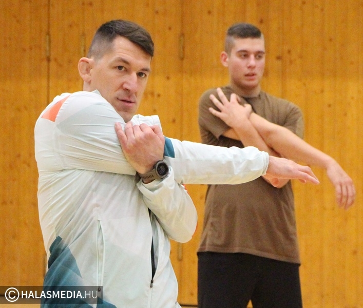 Rendhagyó testnevelésóra helyszíne volt kedden délelőtt a Kiskunhalasi Szakképzési Centrum Dékáni Árpád Technikumának sportcsarnoka. A tizenegyedikes kadétok közül huszonnégyen sorakoztak fel, amikor belépett az ajtón Lőrincz Viktor olimpiai második helyezett, Európa-bajnok birkózó, a Sportszázad törzsőrmestere. A neves sportolót Molnár Nándor igazgató köszöntötte. Mint megtudtuk, Viktor a Küzdj meg a bajnokkal! program keretein belül érkezett az intézménybe. - Örömmel jöttem, a rendhagyó testnevelésórán igyekszem megmutatni, hogy miért is jó a sport. Nem titkoltan az is a cél, hogy a Magyar Honvédség Sportszázadához, a minden napos mozgáshoz közelebb hozzam a diákokat - nyilatkozta stábunknak az olimpiai ezüstérmes.