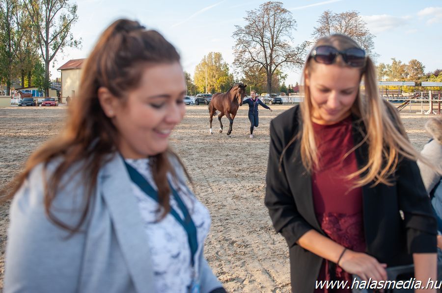 Akik átestek a lószemlén, azok már birtokba is vették a melegítőpályát, illetve lehetőséget kaptak a füves pályán való síkmunkára, hogy a lovak szokják a gyepet és az aréna sajátos atmoszfééráját.