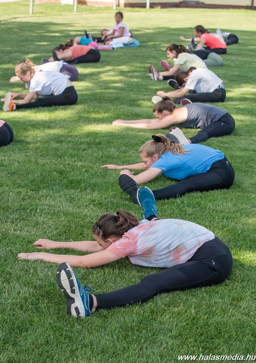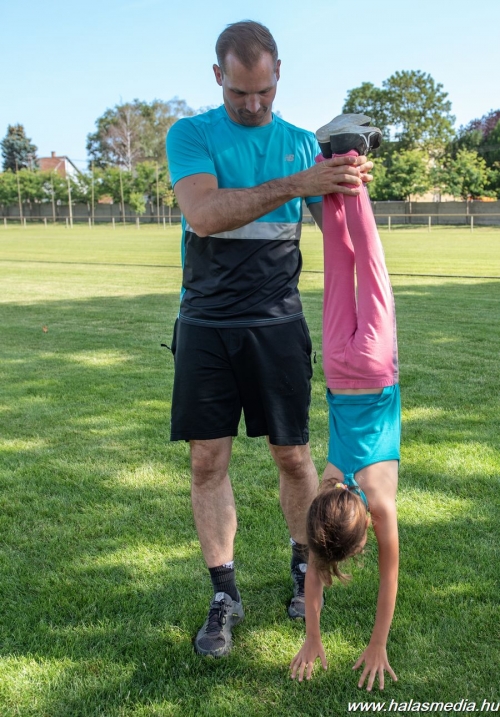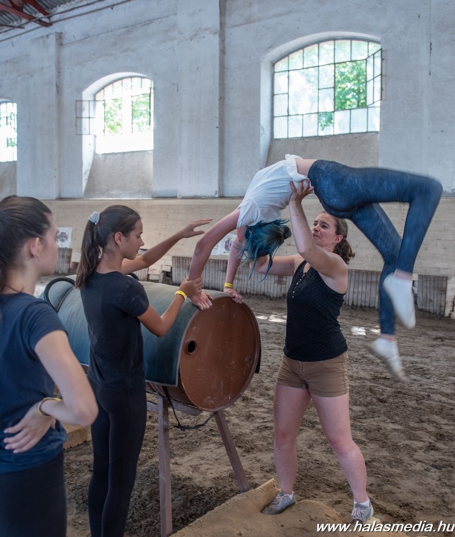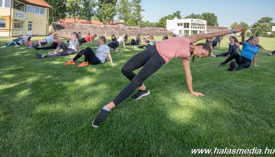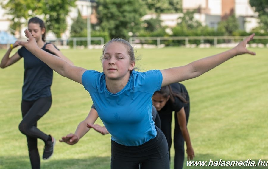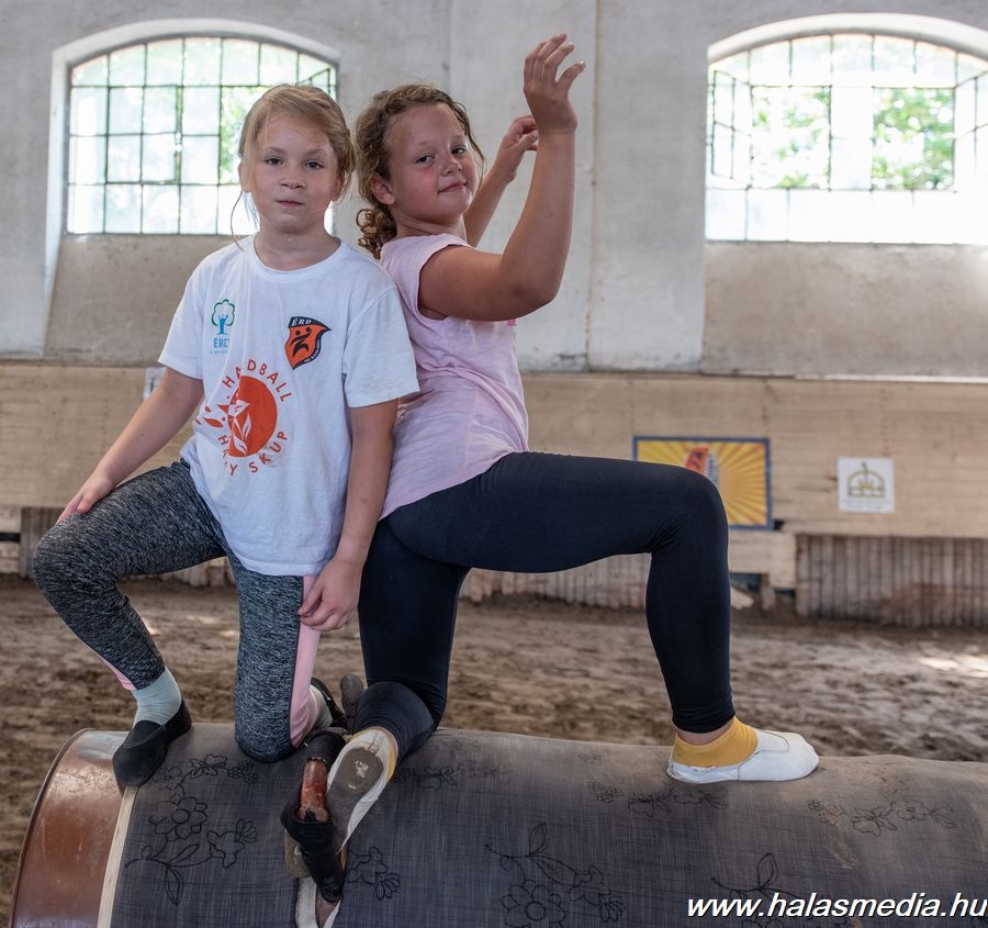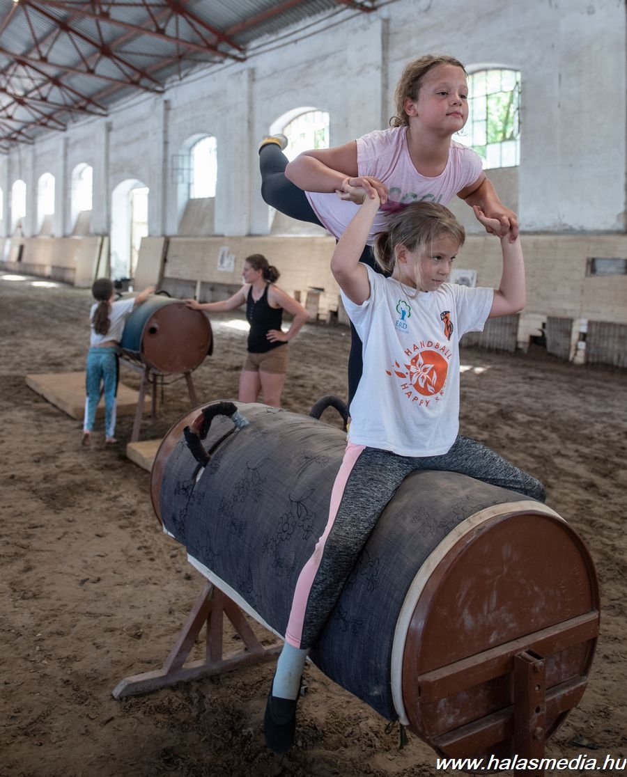 Tóth István a szomszédos Fazekas Iskolában helyes tartásra, talajtorna munkára, gimnasztikára, akrobatikára fókuszáló edzésprogramot állított össze, amit le is vezet turnusokban a résztvevőknek. Fontos a szállás közelsége is. Karnyújtásnyira tőlünk fogadta vendégeinket a Bernáth Lajos Kollégium. A halasi versenyzőink pedig, a Kiskunhalasi Lovasbandérium SE-ből hatan vesznek részt a mostani munkában. Ők otthonról járnak be naponta az edzésekre.