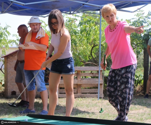 Persze ne tessék azt gondolni, hogy vérre menő volt a küzdelem. Inkább a jókedv dominált és a hétköznapokon, autóban ülő, egyébként szigorú oktatókat is inkább nevetni láttuk. De ez így volt rendjén. Finom bográcsos birka- és marhapörkölt, hideg italok várták a sportolásban kifáradt versenyzőket. Volt, aki egy ütésből teljesítette a feladatot, volt, aki többször ismételt. Volt, aki gyorsan a gázra lépett és abszolválta a pályát. Volt, aki kényelmesen, ugyanakkor tűpontosan tette lyukra a labdákat. A cél, amiért összegyűltek, teljesült. Vancsura János érdeklődésünkre elmondta, hogy biztosan lesz harmadik alkalom is.