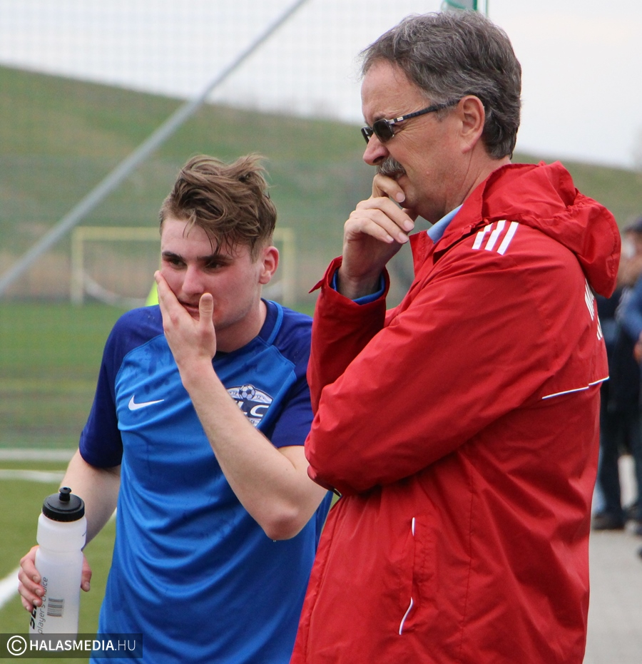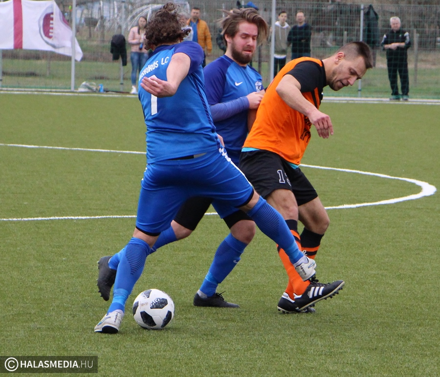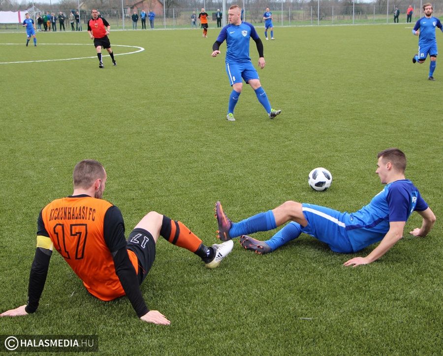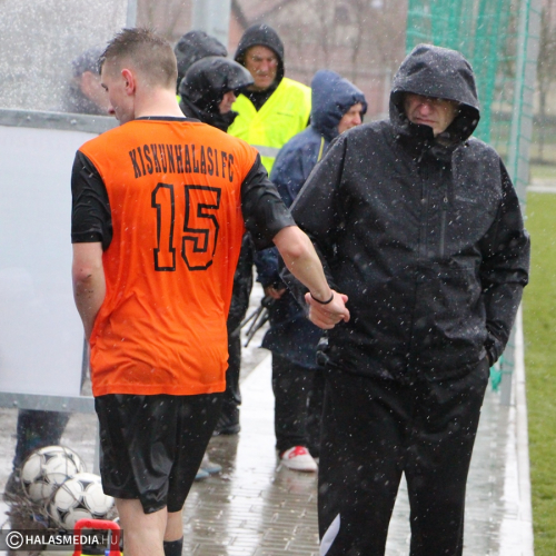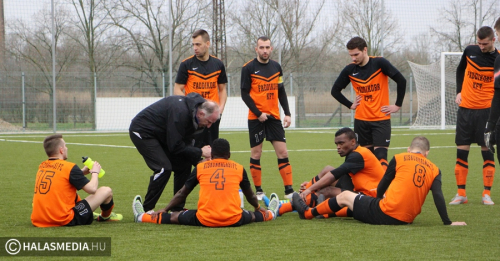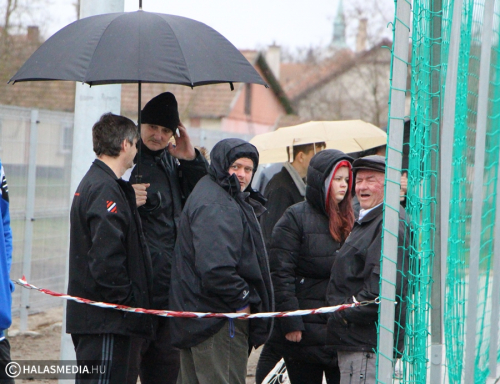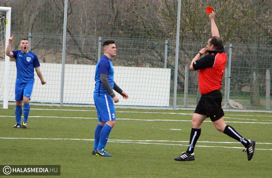 A Bundzsák Dezső Sportközpont műfüves arénájában a kezdő sípszó előtt egy perces néma főhajtással emlékeztek a pénteken elhunyt Ignácz József játékvezetőre. A mérkőzés úgy indult, ahogy az egy rangadóhoz méltó. A találkozót a halasiak kezdték jobban, ennek megfelelően a 7. percben Mihalkó Máté 20 méterről elvégzett szabadrúgásából már rögtön a találkozó elején megszerezhették volna a vezetést a házigazdák, de a kapufán csattant csak a lövés. A szép idő mellé sajnos szép támadások nem párosultak a mérkőzés első felében, inkább csak a mezőnyben vívott kiélezett csata dominált mindkét oldalon. Több szabálytalanságnál még a kilátogató erősebb idegzetű nézők is összerezzentek.