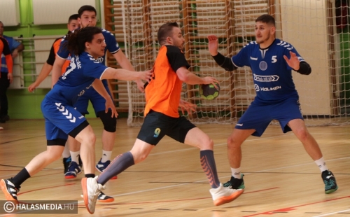 A férfiak számára a döntőbe jutás volt a tét. Az ellenfél a szomszédvári rangadó keretein belül a Soltvadkert volt. Nos, a két csapat felfokozott hangulatú meccset játszott, amelyet élvezett a publikum. Remek kapusteljesítmények voltak mindkét a halasi Ifkovics Zorán és a vadkerti Csernék Gábor is bravúrokat mutatott be. A találkozót egyébként a vendégek kezdték jobban, a 7. percben 2-1-re vezettek. A folytatásban viszont rendezte sorait az UKSC és 18. percben Virág Tamás gólja már 8-3-as halasi vezetést jelzett. sőt két perccel később már Mezei Dávid hétgólosra hizlalta az előnyt. A szünetben 13-5 állt az eredményjelzőn.