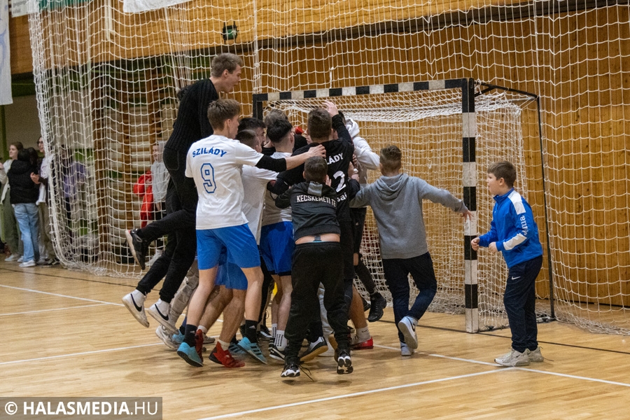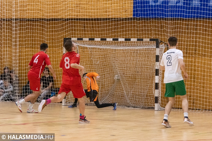 A házigazda Tekó útja viszont buktatókkal volt nehezítve. A Dékáni-technikum elleni meccsen csal néhány pillanatra volt kérdéses a három pont sorsa, végül magabiztos sikert arattak Tóth Péterék. Dózsa Zsolt és Hugyecz János csapata a veretlen és gólt sem kapó Kiskunfélegyházával meccselt ebédidőben. Egy végletekig kiélezett találkozón a félegyháziak szereztek vezetést, ám Dömötör Andor fél perc alatt két pazar lövéssel megfordította az eredményt. Az egyébként kiválóan focizó Kiskunfélegyháza egyenlíteni tudott, de Rácz Tamás szemfülessége győzelmet ért a hazaiaknak. Jöhetett a pótselejtező az Orosháza ellen. Vérbeli kupacsata volt, ahol a vége előtt három perccel még 3-1-es tekós vezetést mutatott az eredményjelző. Két hiba és máris egyenlő volt az állás, következhettek a büntetők. Gilányi Áron, a tekós Iron védeni tudott, Tóth Péter viszont belőtte, így kezdődhetett az ünneplés. A II. Rákóczi vasárnap reggel ismét a Kiskunfélegyházával meccsel, egy győzelem döntőt érhet a házigazdának.