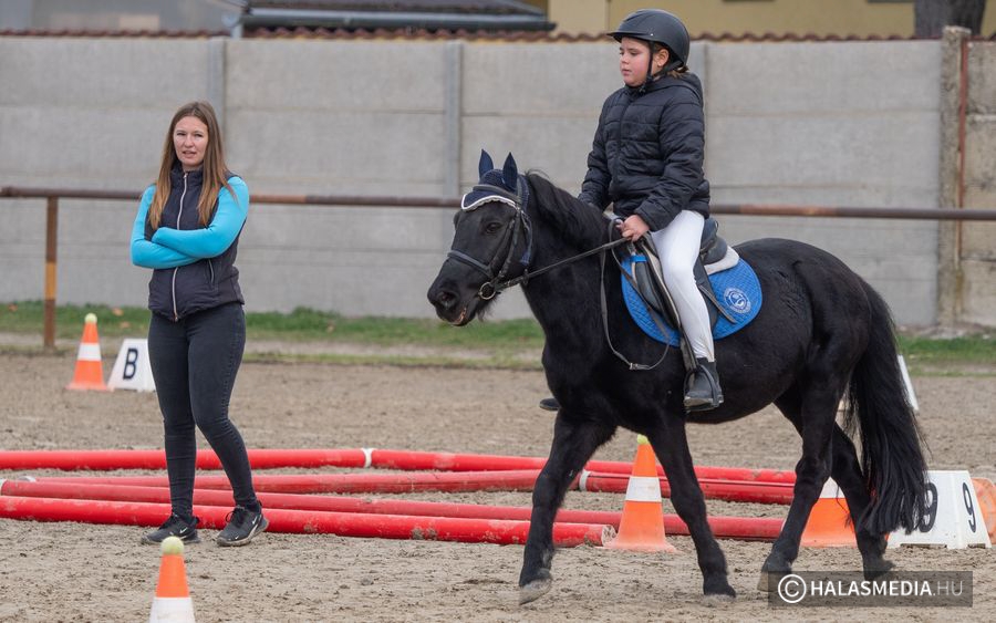A szombati, halasi versenyen 8 órakor kezdtek a legkisebbek. Az első két fordulóban, futószáras és vezetgetős számokban minden induló első helyezést kapott a szabályok szerint. Ezzel a kudarcélmény elkerülése és a motiváció a célja versenyrendszernek, ami nagyon biztonságos, hiszen a lovak mellett közvetlen ott van a szakértő segítség.