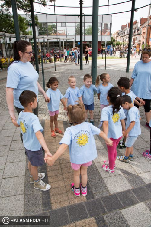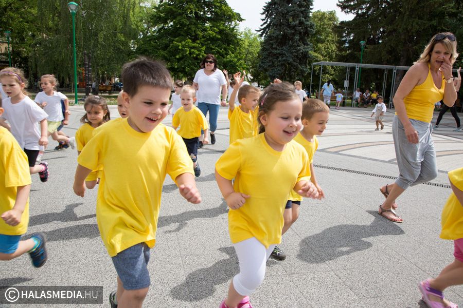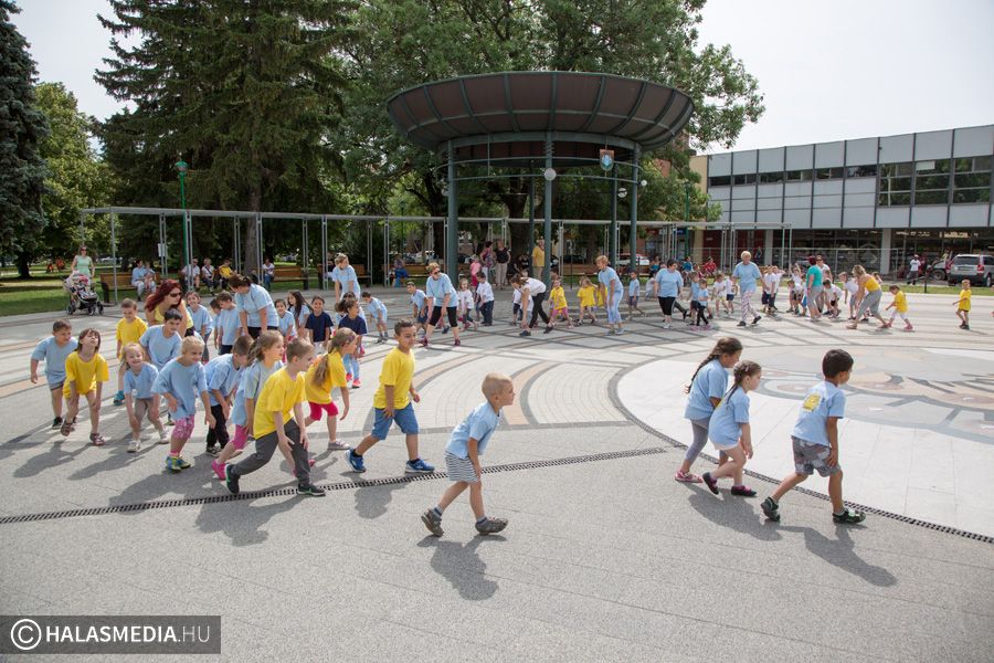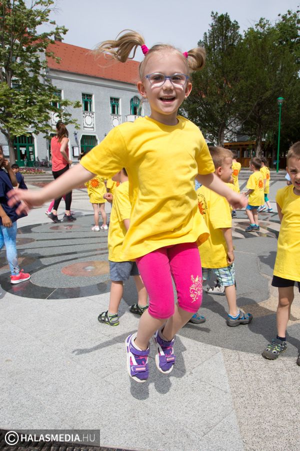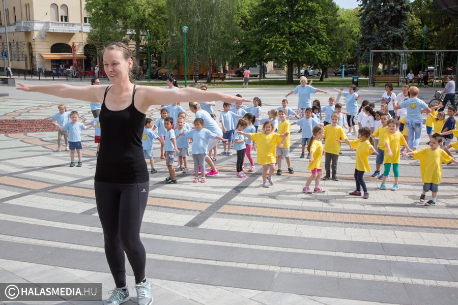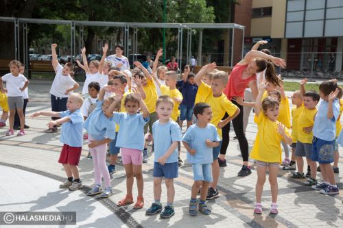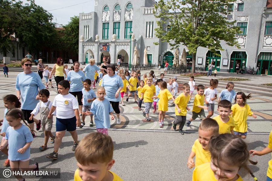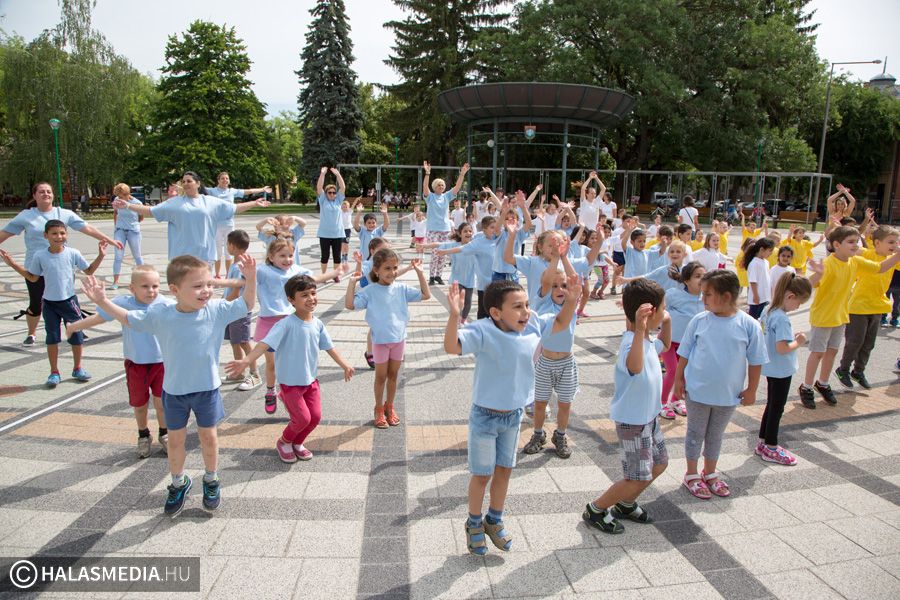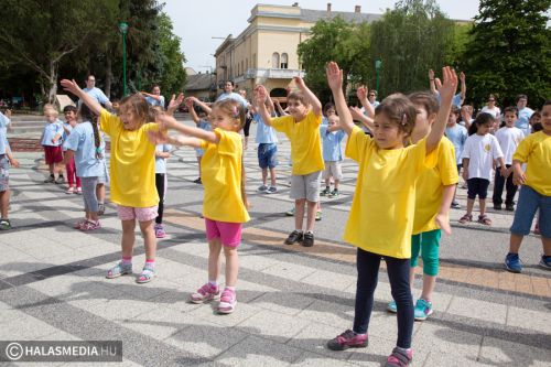 Mint ahogy az már bevett szokás, a Challange Day alkalmával, a Halasi Napsugár Óvodák minden intézményéből érkeztek csoportok a város főterére. Délelőtt pontban 10 órakor közös zenés tornába fogtak és még arra is volt energiájuk, hogy jó párszor körbefussák a főtéri pávát.