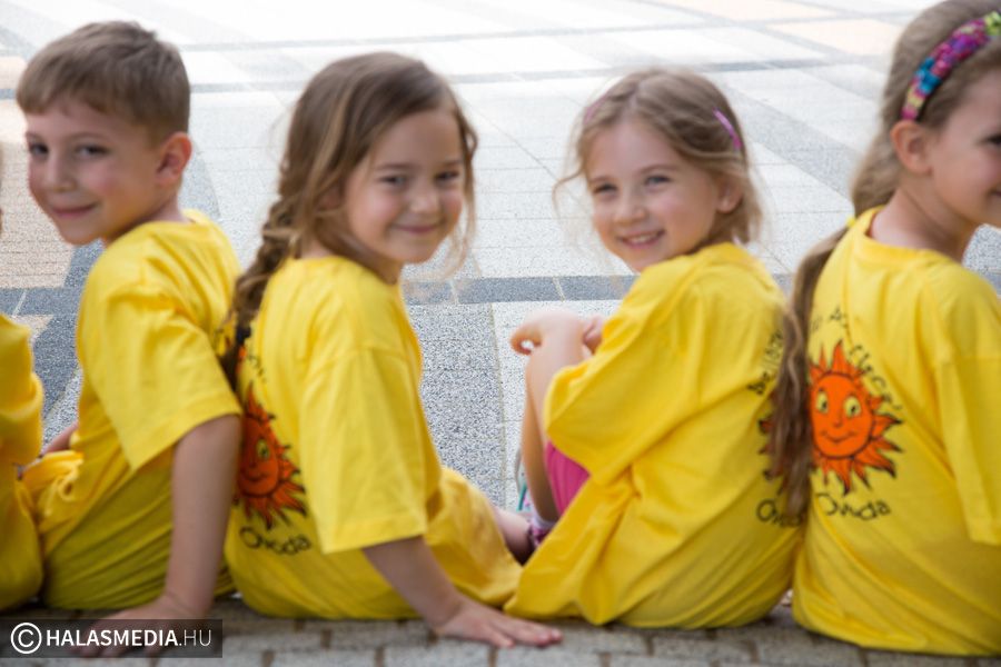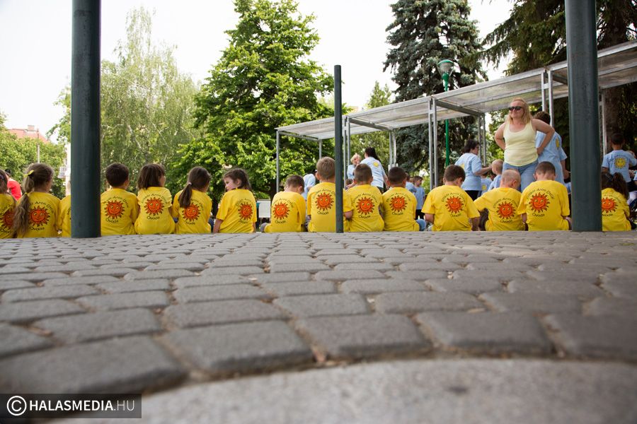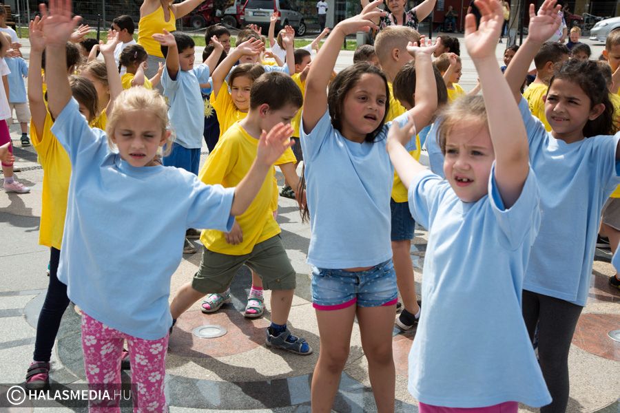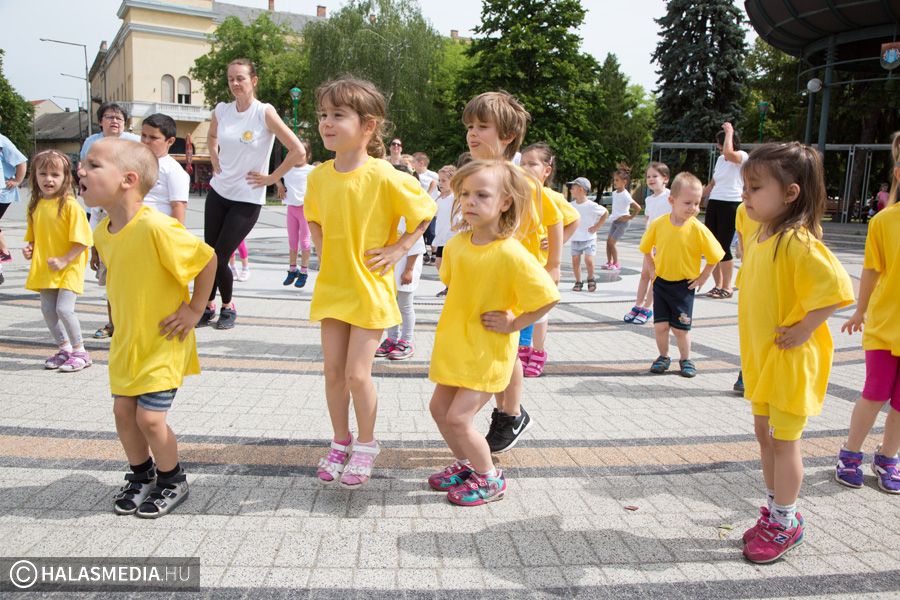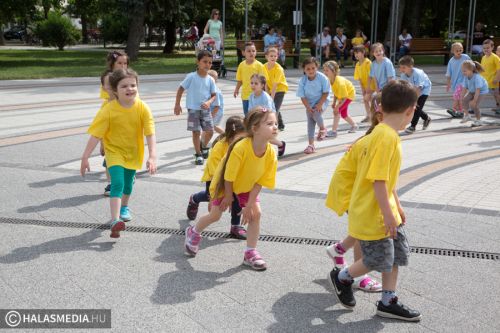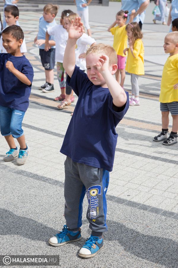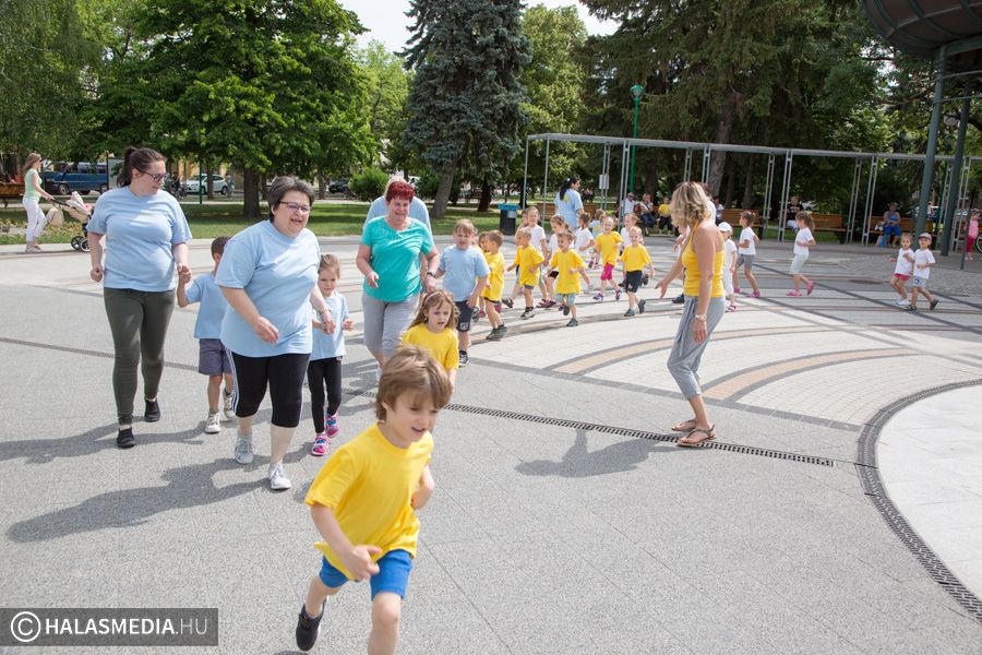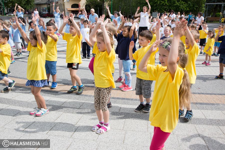 Mint ahogy az már bevett szokás, a Challange Day alkalmával, a Halasi Napsugár Óvodák minden intézményéből érkeztek csoportok a város főterére. Délelőtt pontban 10 órakor közös zenés tornába fogtak és még arra is volt energiájuk, hogy jó párszor körbefussák a főtéri pávát.