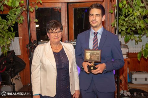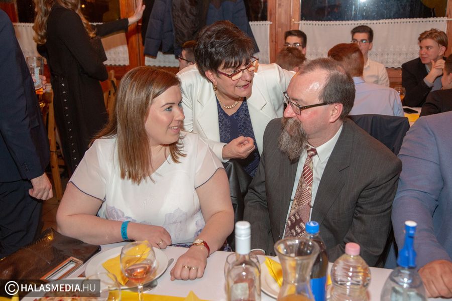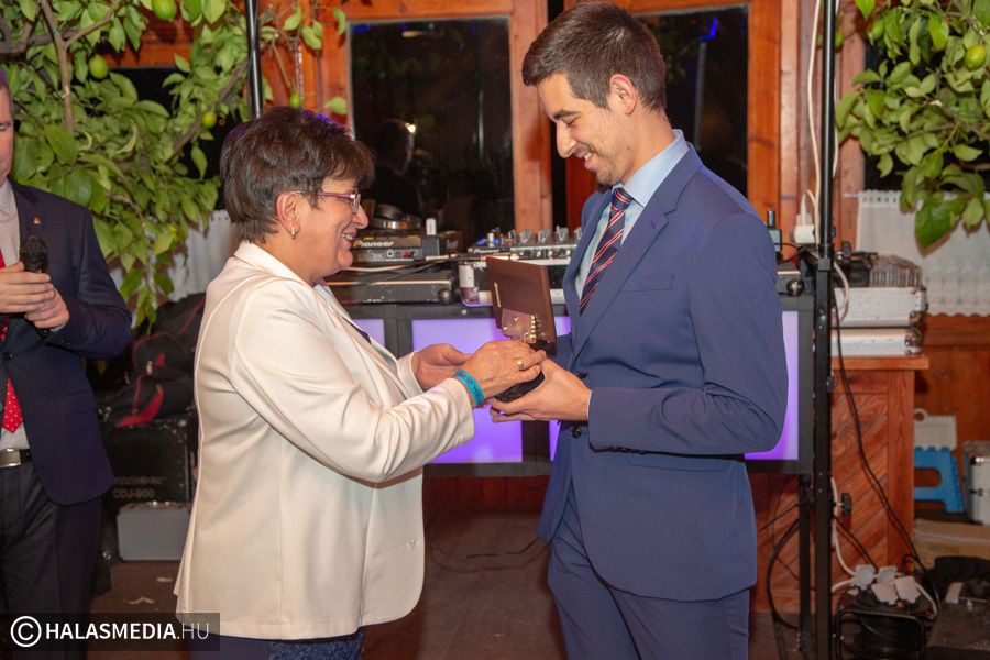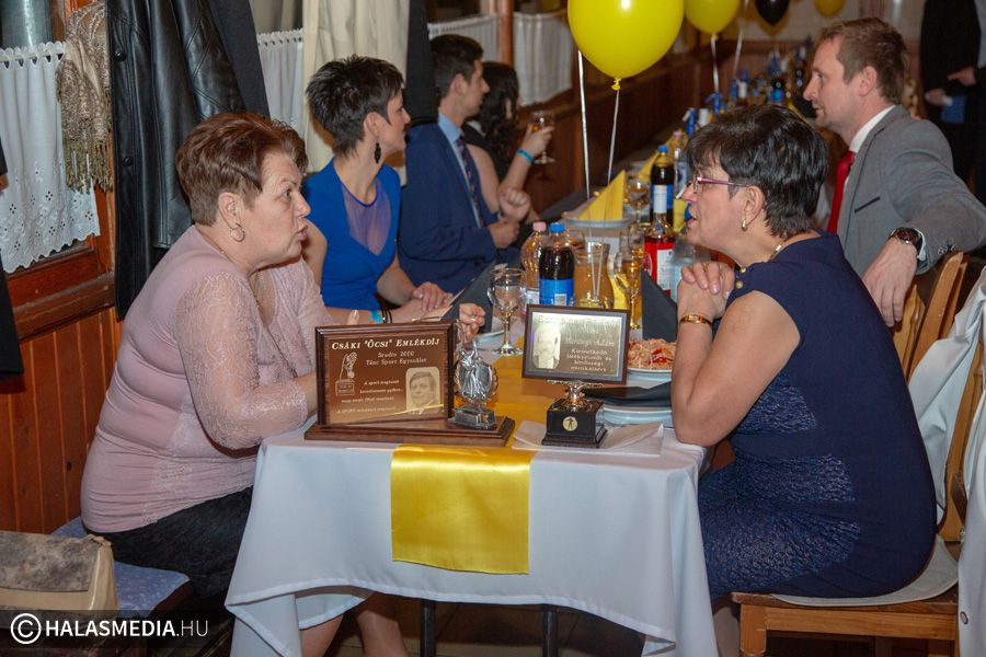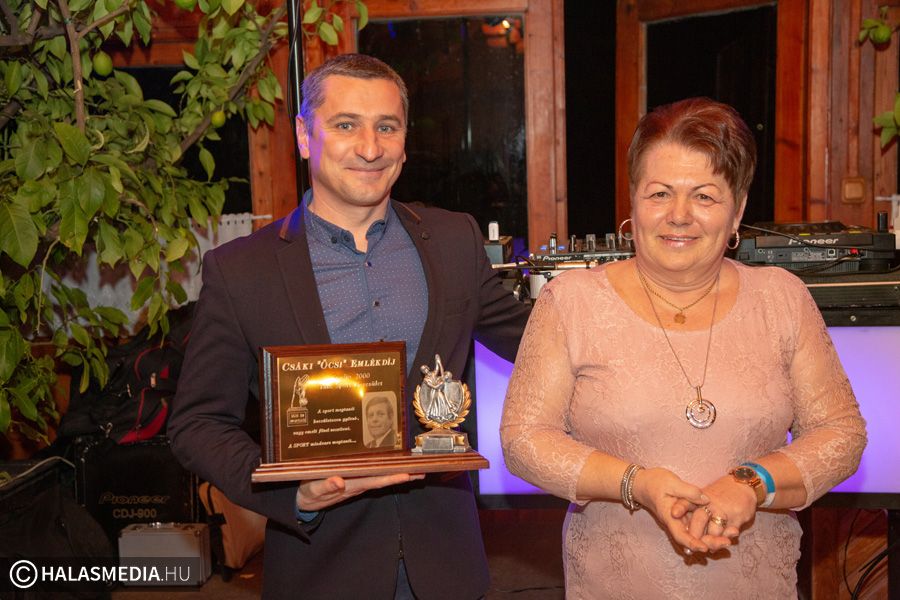 Alig 14 perc alatt elfogyott mind a 340 belépőjegy az idei Sportbálra. A felfokozott érdeklődés nem lepi meg a szervezőket, a Sóstó Csárda csapata és Csala Mónika jóvoltából évek óta az egyik legnépszerűbb rendezvénnyé vált ez az est. Logisztikai bravúr volt már az asztalok elhelyezése is úgy, hogy maradjon tánctér. A Sportbálon adták át az emlékdíjakat. Idén a Schneider Pál Emlékdíjat egy fiatal játékvezető, Baranyi Ádám vehette át a névadó özvegyétől, Katalin asszonytól (címképünkön). A Gulyás József Emlékdíjat Dózsa Zsolt érdemelte ki, aki éppen azokban az órákban Erdélyben, a Berde Kupán szerepelt a Tekó csapatával. Távollétében felesége, Mónika és két gyermeke képviselte őt, az emlékdíjat Gulyás Luca és Juhász Tibor adta át. A Csáki Öcsi Emlékdíjat 2019-ben a Stúdio 2000 TSK érdemelte ki, Csákiné Évától Kitos Sándor elnökségi tag kapta meg az elismerést.
