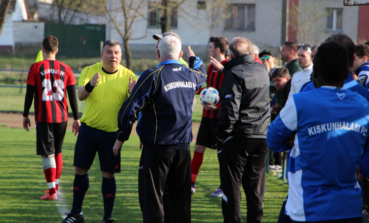Napsütéses időjárás fogadta a megyei I. osztályú labdarúgó-bajnokság ötödik tavaszi fordulójában a házigazda Faddikorr-Kiskunhalasi FC és a Kalocsa csapatát, valamint a nézőket a Bundzsák Dezső Sportközpontban. A kalocsaiak egy sima győzelemmel, mi pedig egy váratlan vereséggel a hátunk mögött vártuk a kezdő sípszót. Az első játékrészben a hazai lehetőségek ezúttal is megvoltak, ám a 21. percben egy pontrúgás után Nasz Balázs simán fel tudott emelkedni és fejjel bevette a hazai kaput. A folytatásban sok volt a tisztátalan belépő, ezt pedig a játékvezető nem torolta meg, a játékosok is sokat foglalkoztak egymással. Ennek egyik következménye az volt, hogy a lefújás előtt nem sokkal egy nézői reakció nyomán hívta oda az aszisztens Allaga Iván játékvezetőt, aki nehezen tudott rendet tenni. Volt olyan fültanú, aki állította, a partjelző is olyat szólt, ami nem focipályára való.